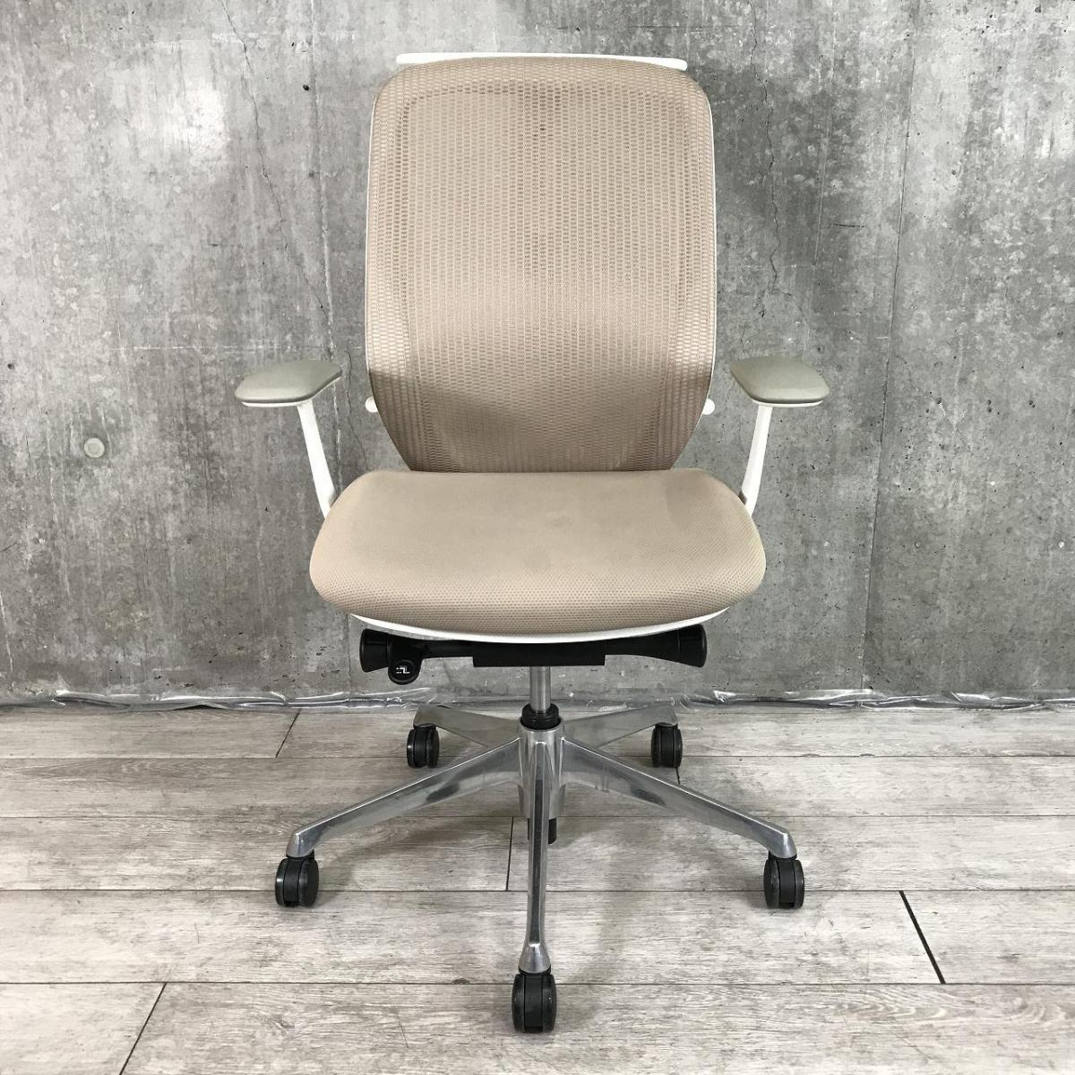 【大人気シリーズ!】オカムラ/シルフィーメッシュ/ベージュ ホワイトボディ アジャストアーム アームレスト付
