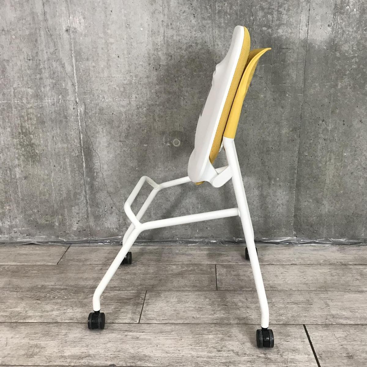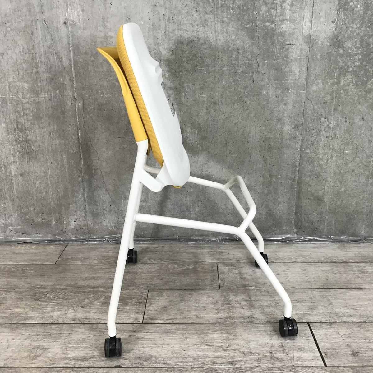 【シンプルなデザインで使いやすい!重ねて収納可能なネスティングチェア!会議室、共有スペースなどに!】■オカムラ(okamura)製 ルナチェア ネスティングチェア ミーティングチェア ■イエロー ■背ヌードメッシュ ■キャスター付