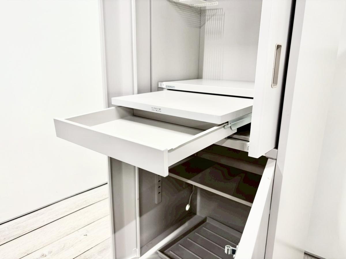 スチール製なので、扉を閉めてしまえば他のキャビネットと同様の外観となり、