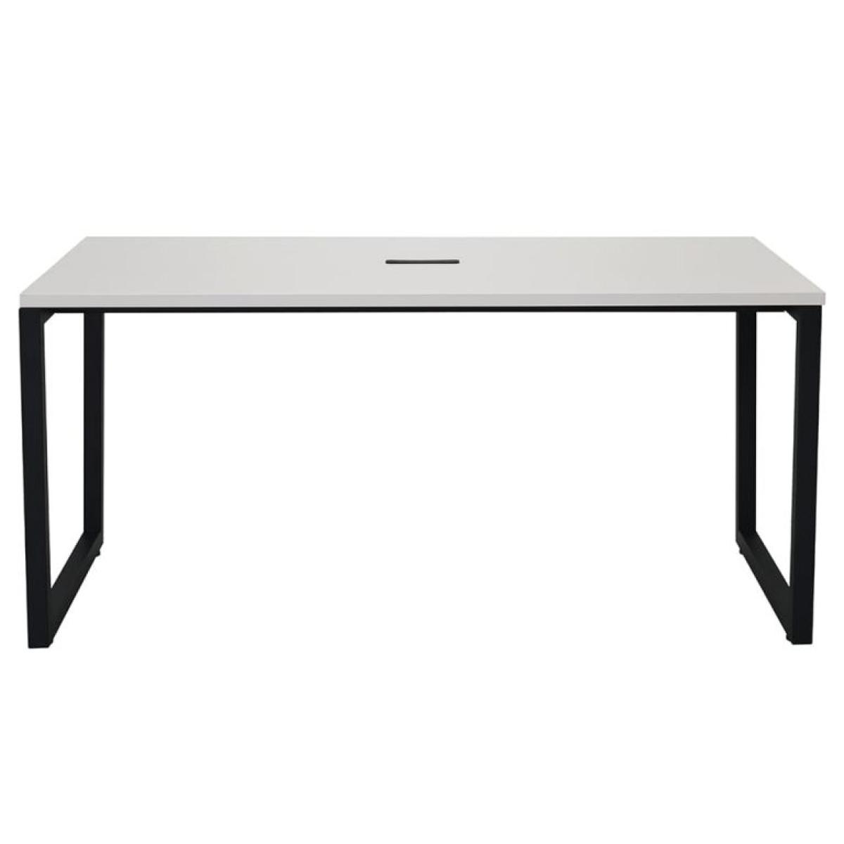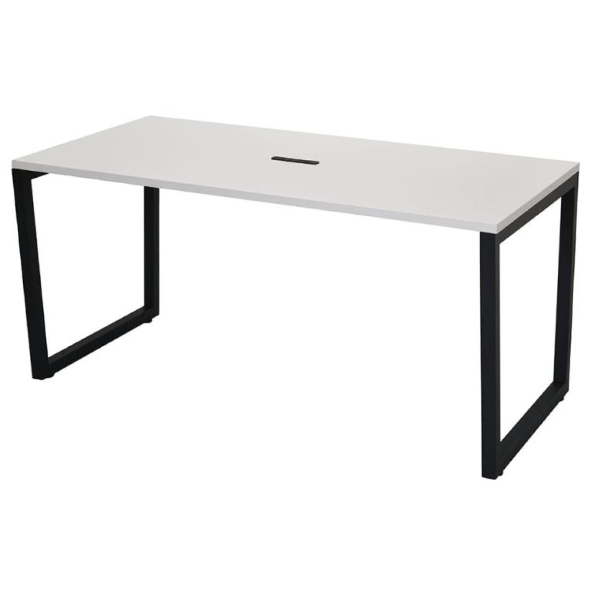 【新品】リスム ミーティングテーブル W1500xD750 ホワイトxブラック脚 4ヶ口コンセント付【RF】新品