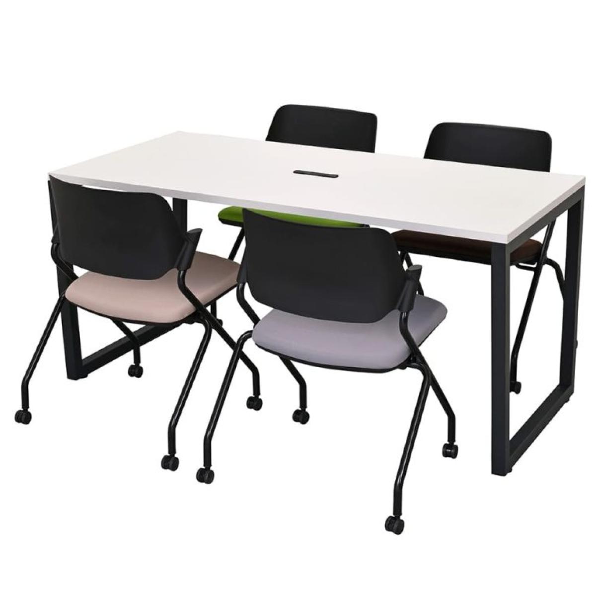 天板中央に4ヶ口のコンセントを備え机上での充電が容易、ノートPCを使用した会議が快適になります。