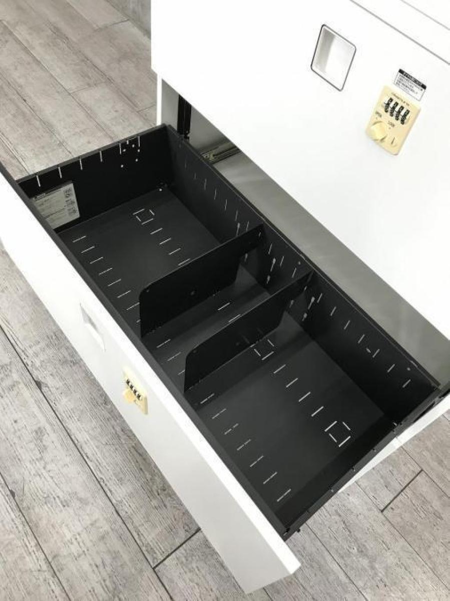 下段の3段ラテラル書庫は引き出しタイプの為、開けた際に上から中が一目瞭然です!