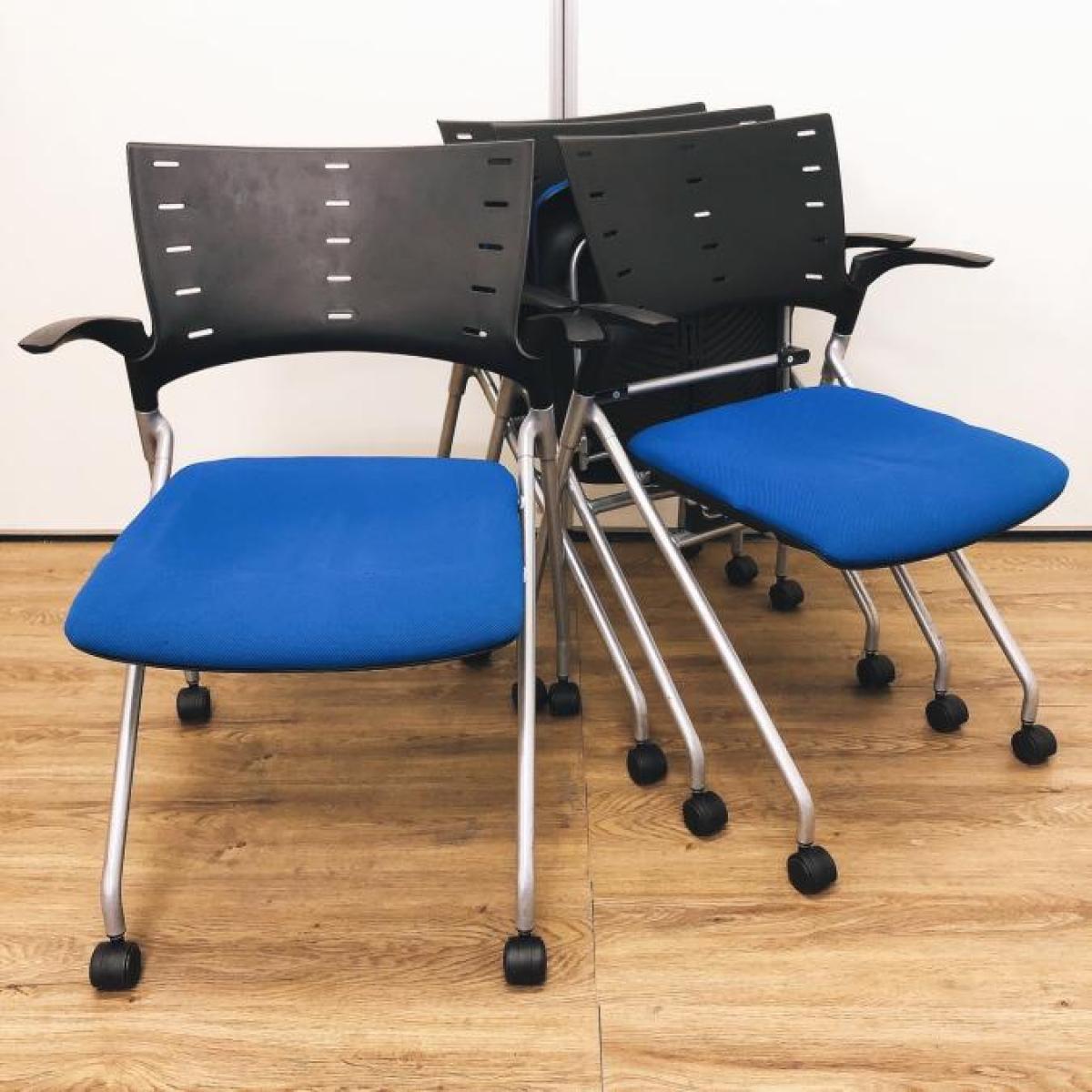 【キャスター付でスイスイ動かせる!省スペースで収納可能!会議や研修にオススメ!】■イトーキ製 マノス(MANOSS) ネスティングチェア 背面パッド無し ■ストロングブルー ■オフィスバスターズ東大阪店 【W】