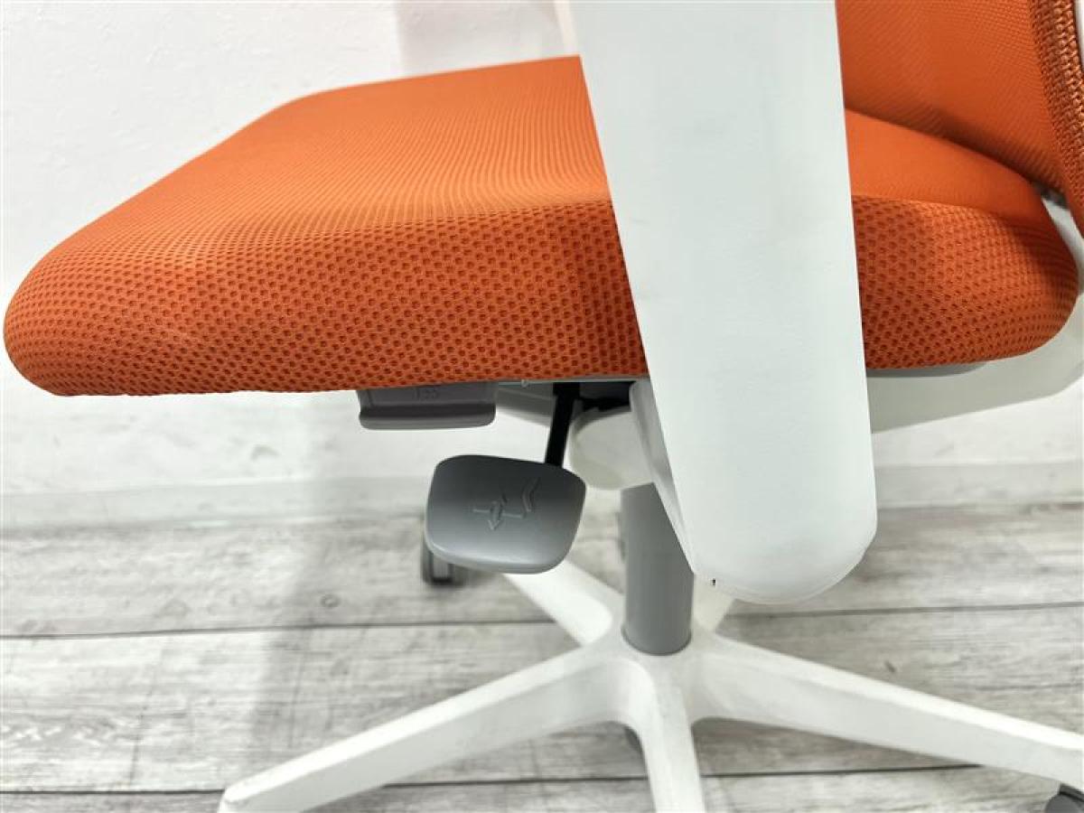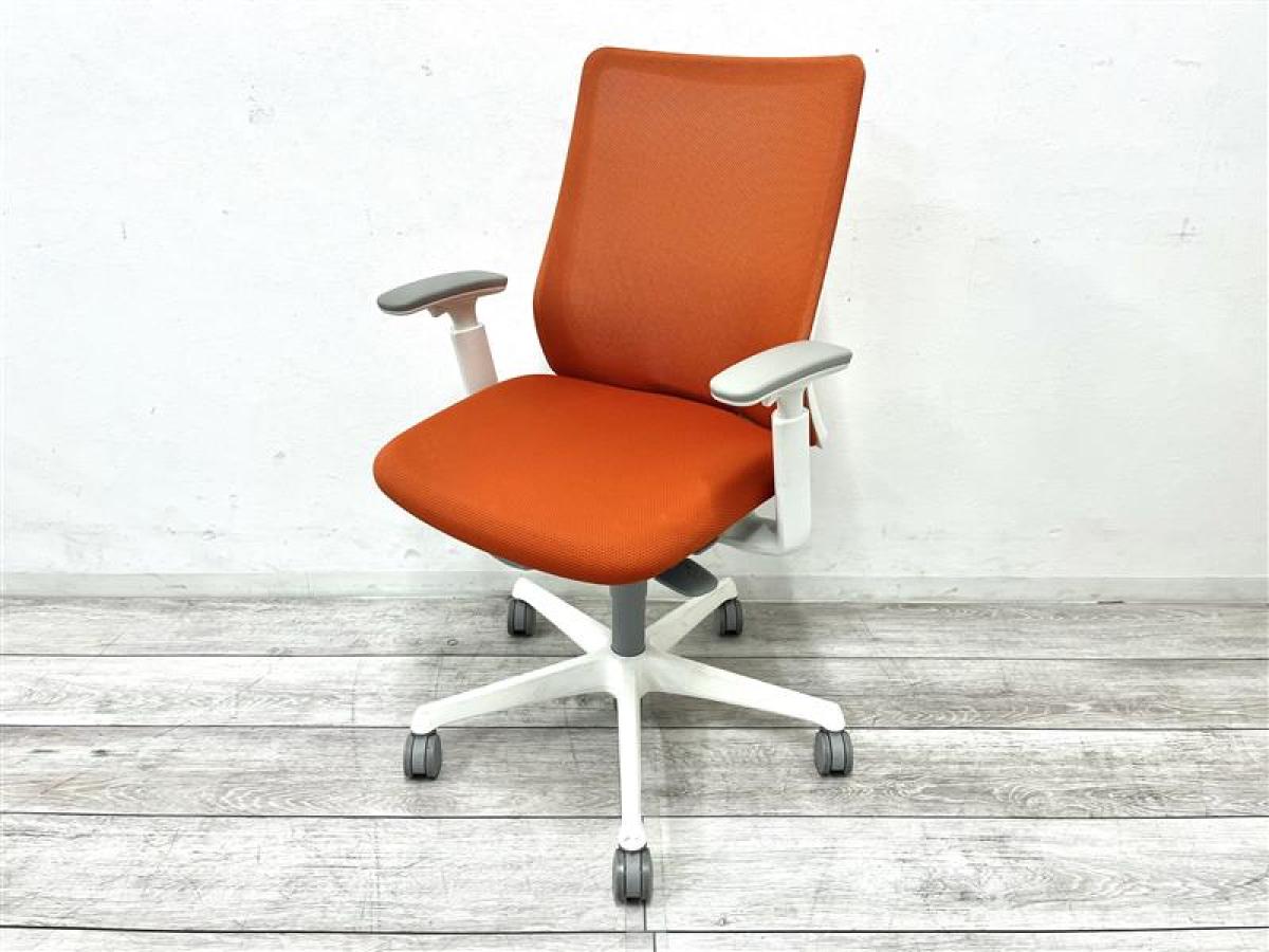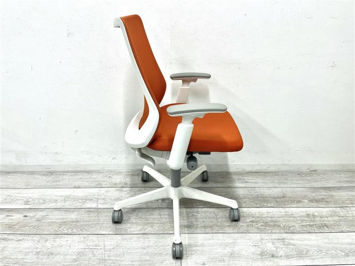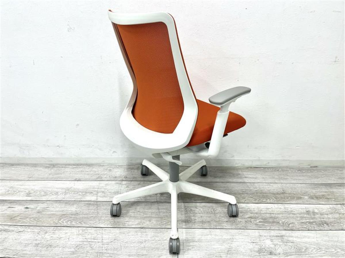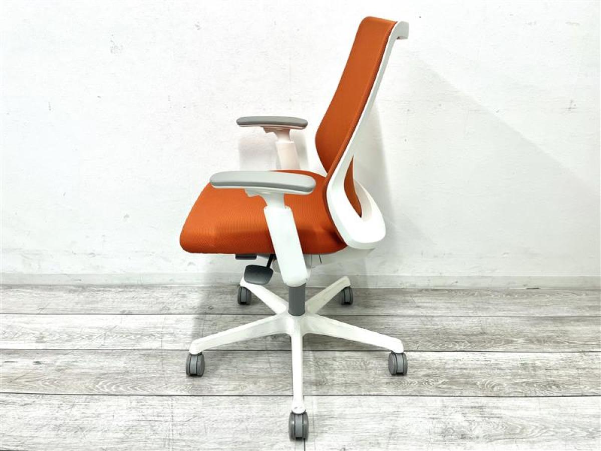 【背中を立体的に包み込むフィット感が心地よい!】■オカムラ フルーエントチェア 可動肘付 オレンジ ホワイトシェル ■あのシルフィの座り心地を低コストで再現!【Okamura Fluent】★