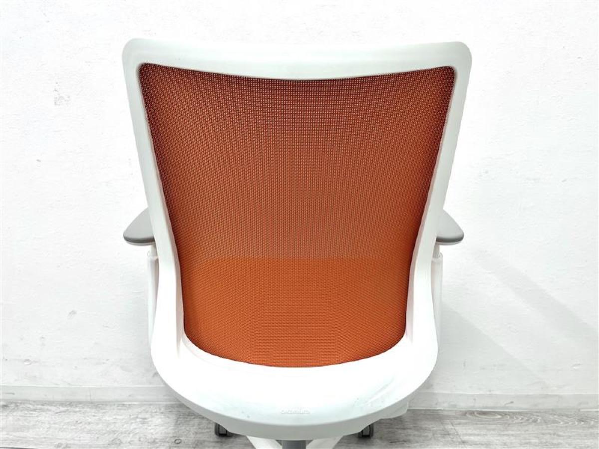 【オカムラ現行品のメッシュチェア!】【背中を立体的に包み込む!シルフィの座り心地を低コストで再現!】■オカムラ(okamura)製 フルーエントチェア(Fluent) 肘付き ローバック 背面メッシュ ■可動肘 ■オレンジレッド×ホワイトシェル