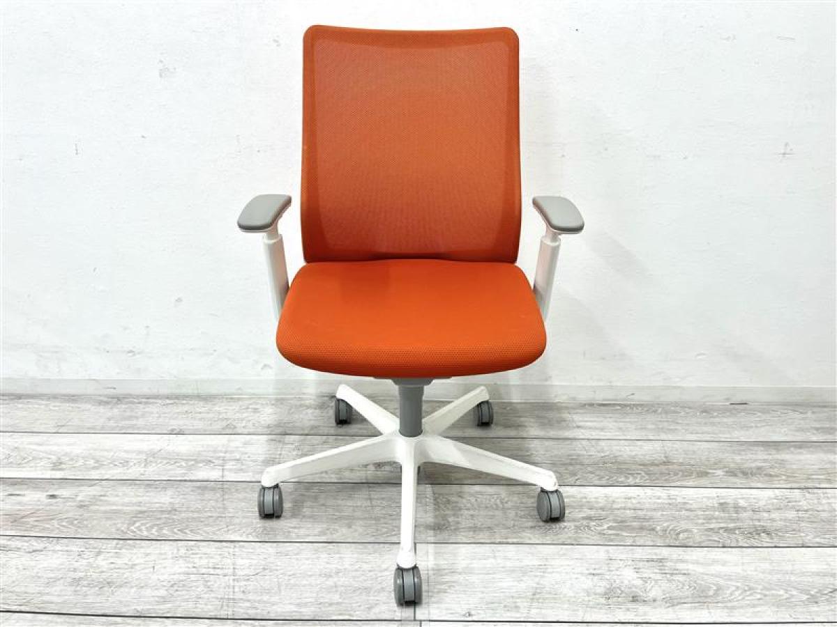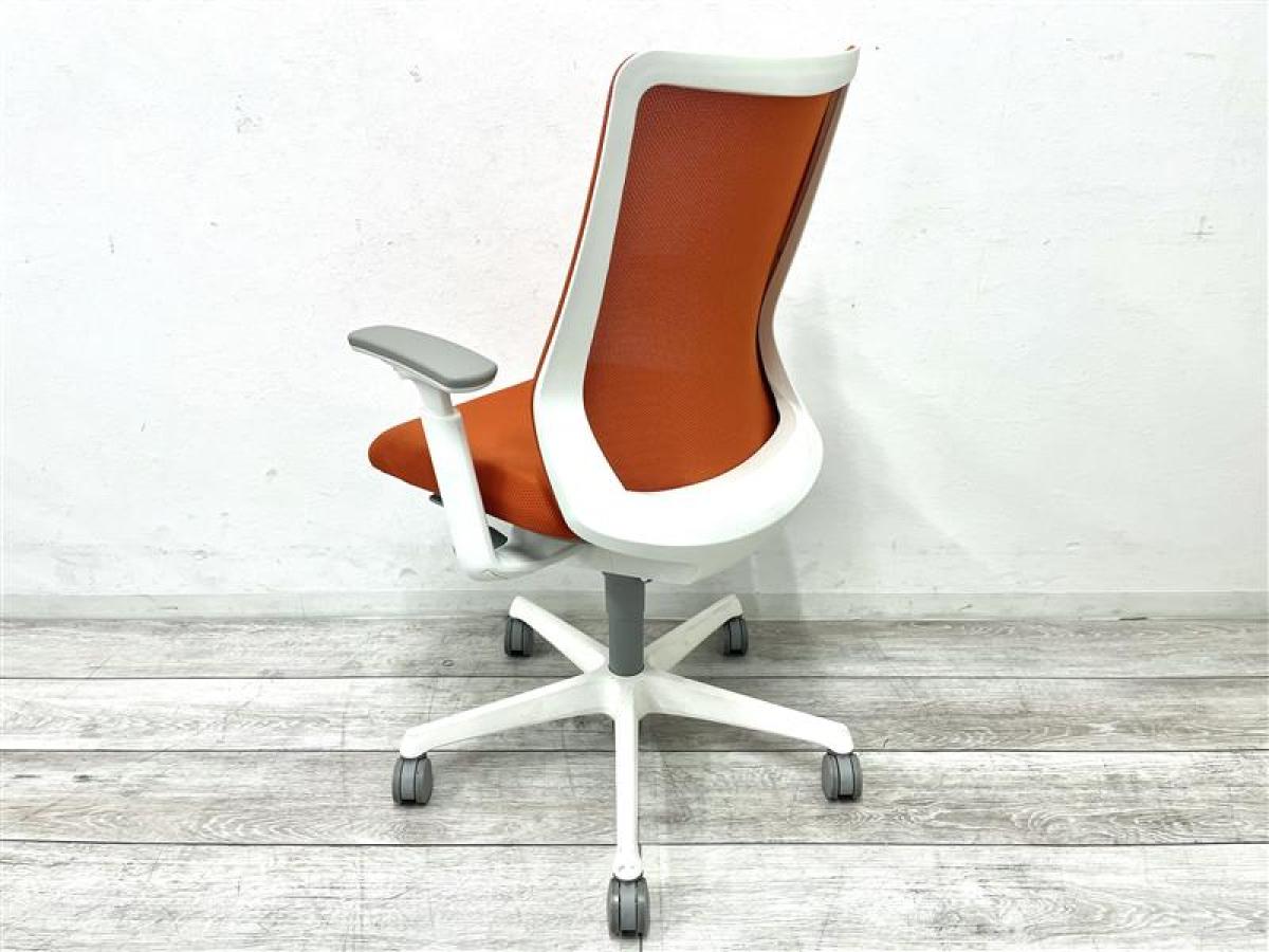 【背中を立体的に包み込むフィット感が心地よい!】■オカムラ フルーエントチェア 可動肘付 オレンジ ホワイトシェル ■あのシルフィの座り心地を低コストで再現!【Okamura Fluent】★