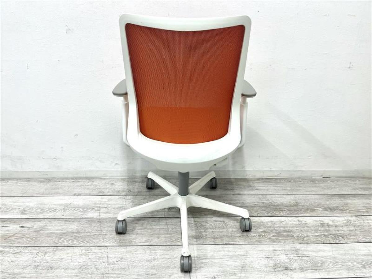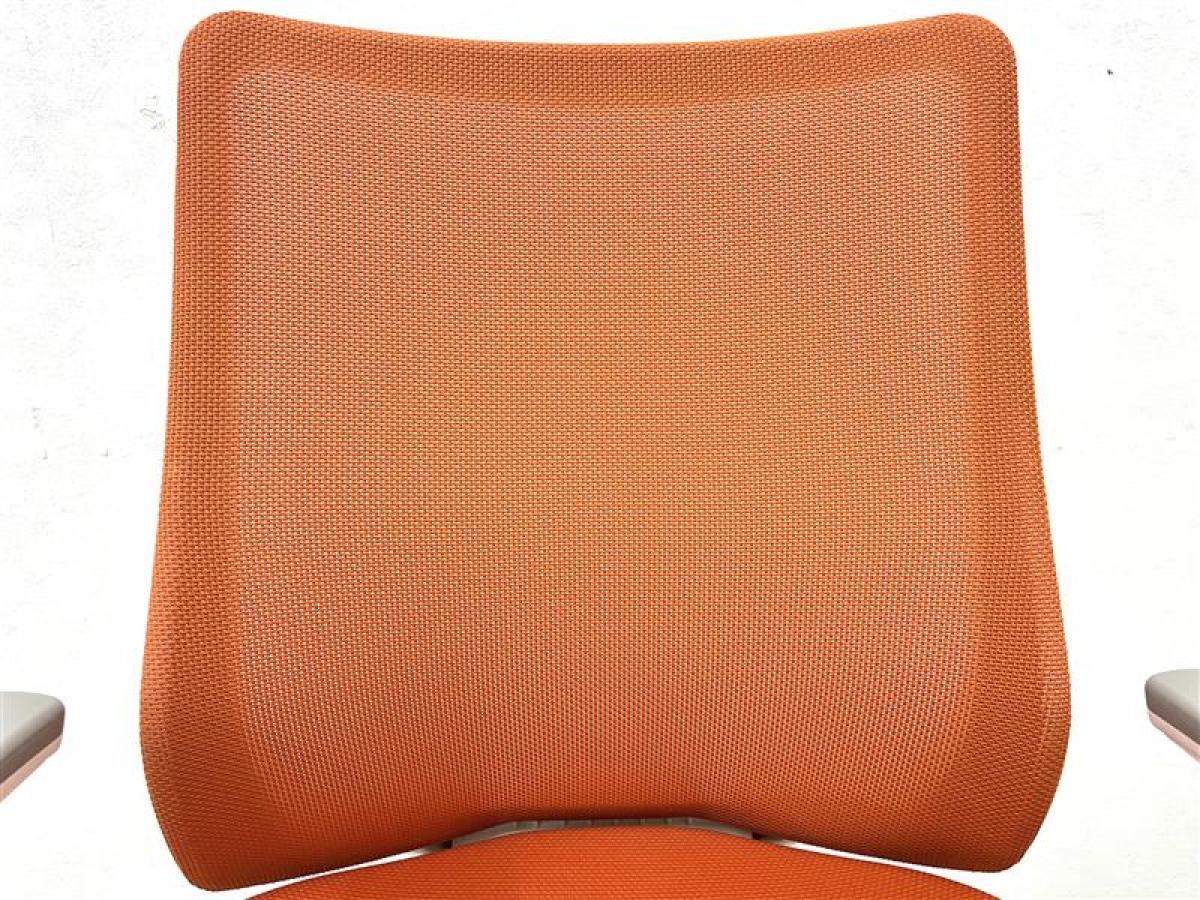 【オカムラ現行品のメッシュチェア!】【背中を立体的に包み込む!シルフィの座り心地を低コストで再現!】■オカムラ(okamura)製 フルーエントチェア(Fluent) 肘付き ローバック 背面メッシュ ■可動肘 ■オレンジレッド×ホワイトシェル