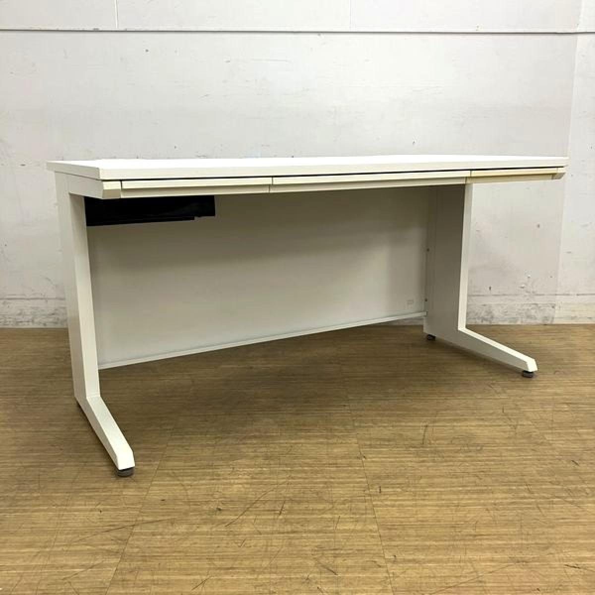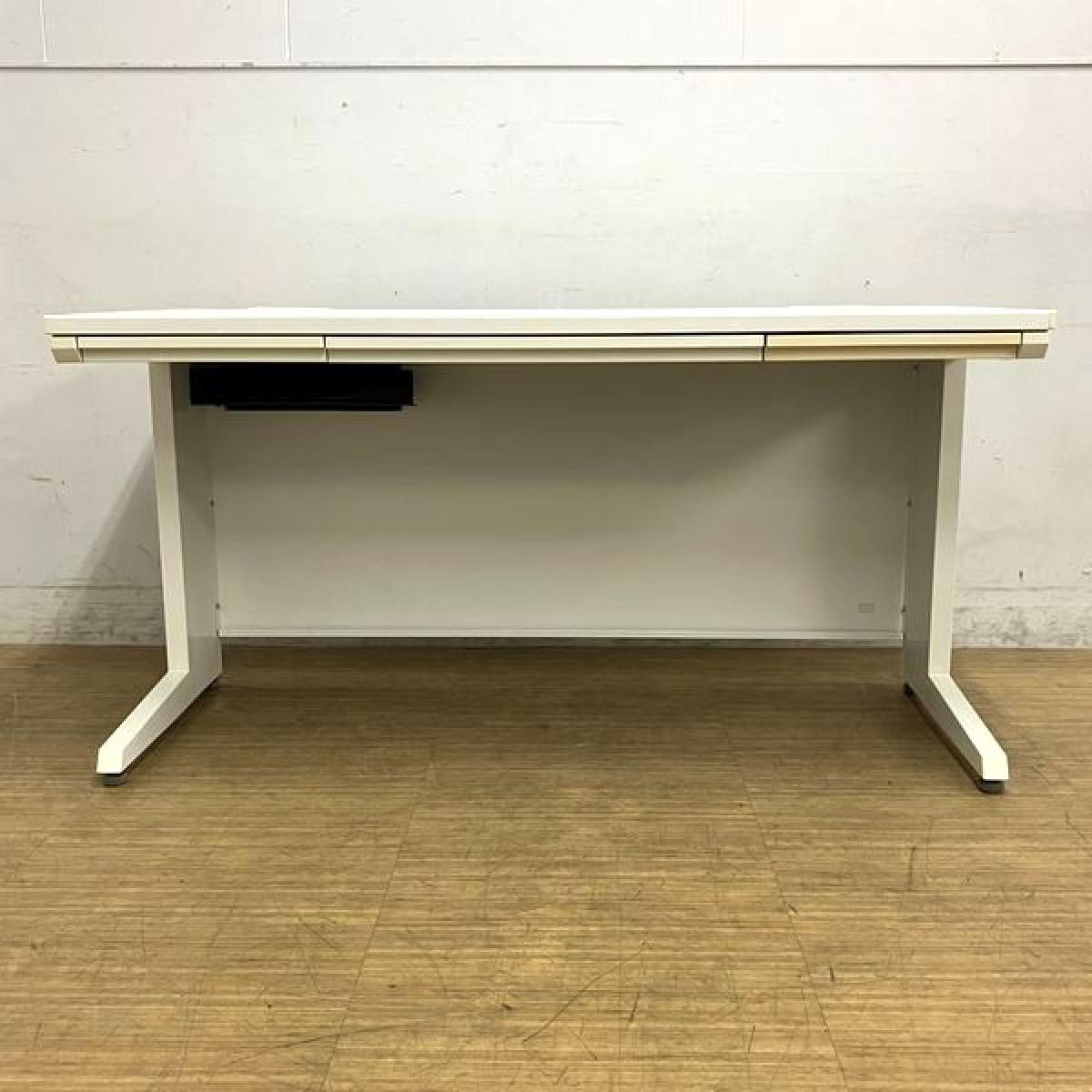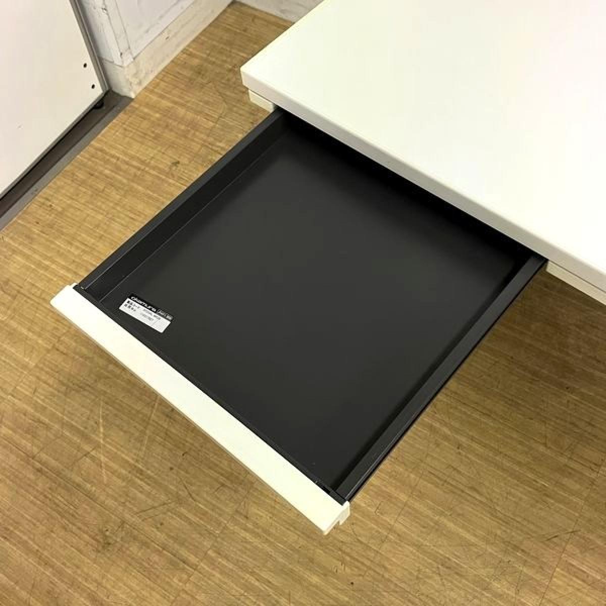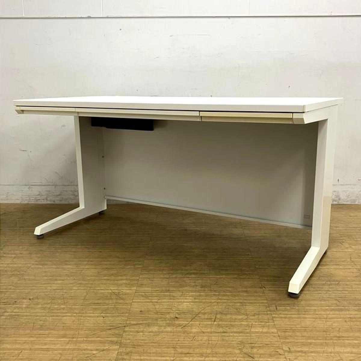 オカムラ アドバンス-Sデスク 平机 センター引出し付 人気のホワイト天板 ゆったりめのサイズのW1400 配線孔2カ所 ※樹脂部分に日焼けあり 【愛知・名古屋・豊田・静岡・浜松】- 名古屋千種店