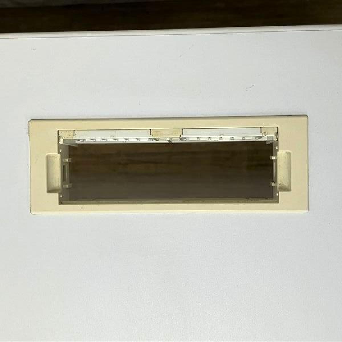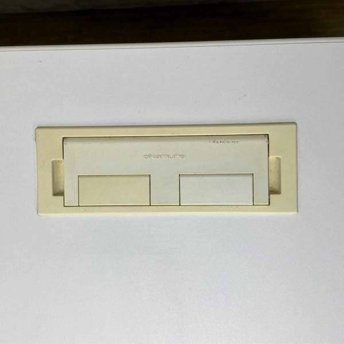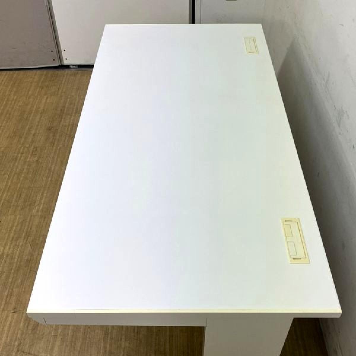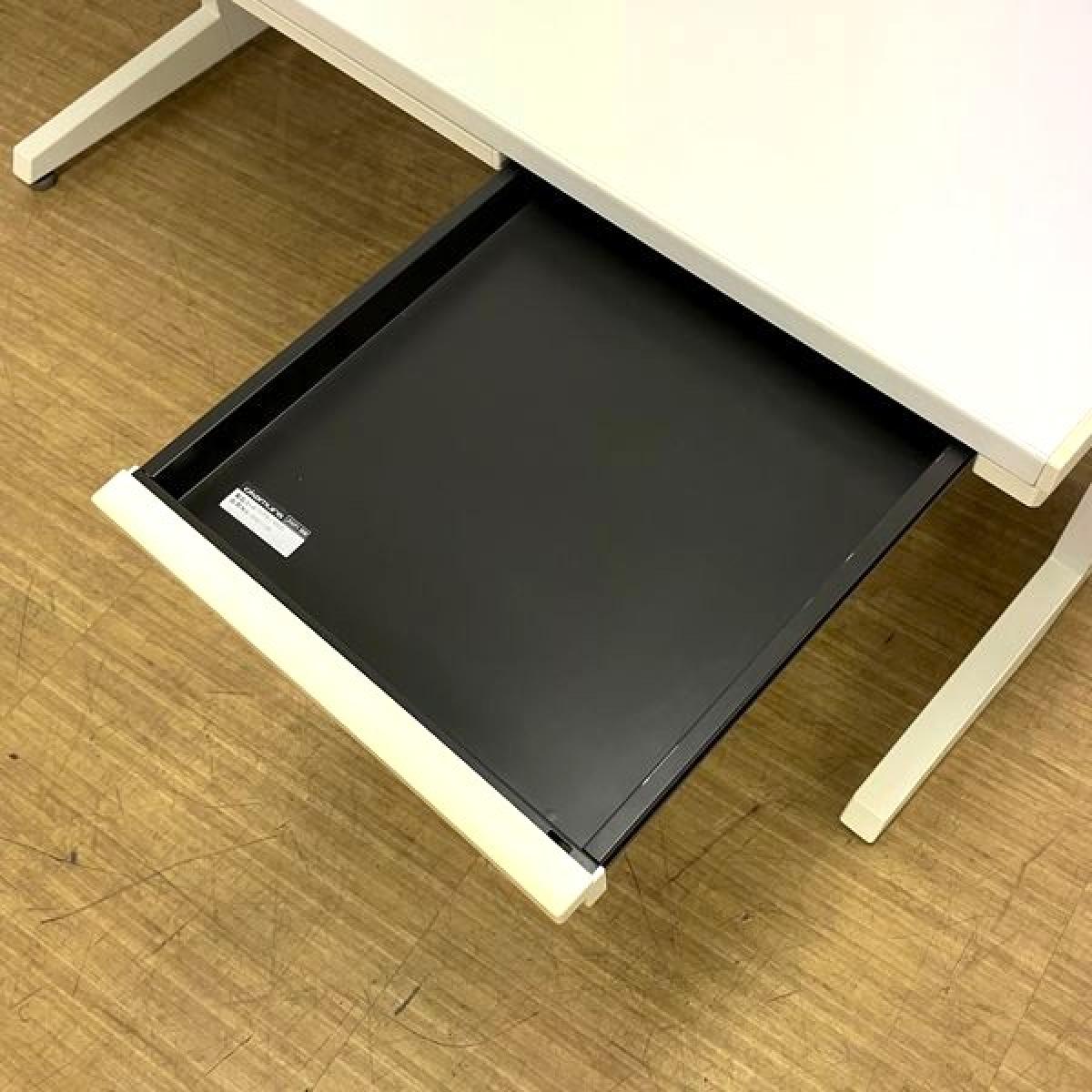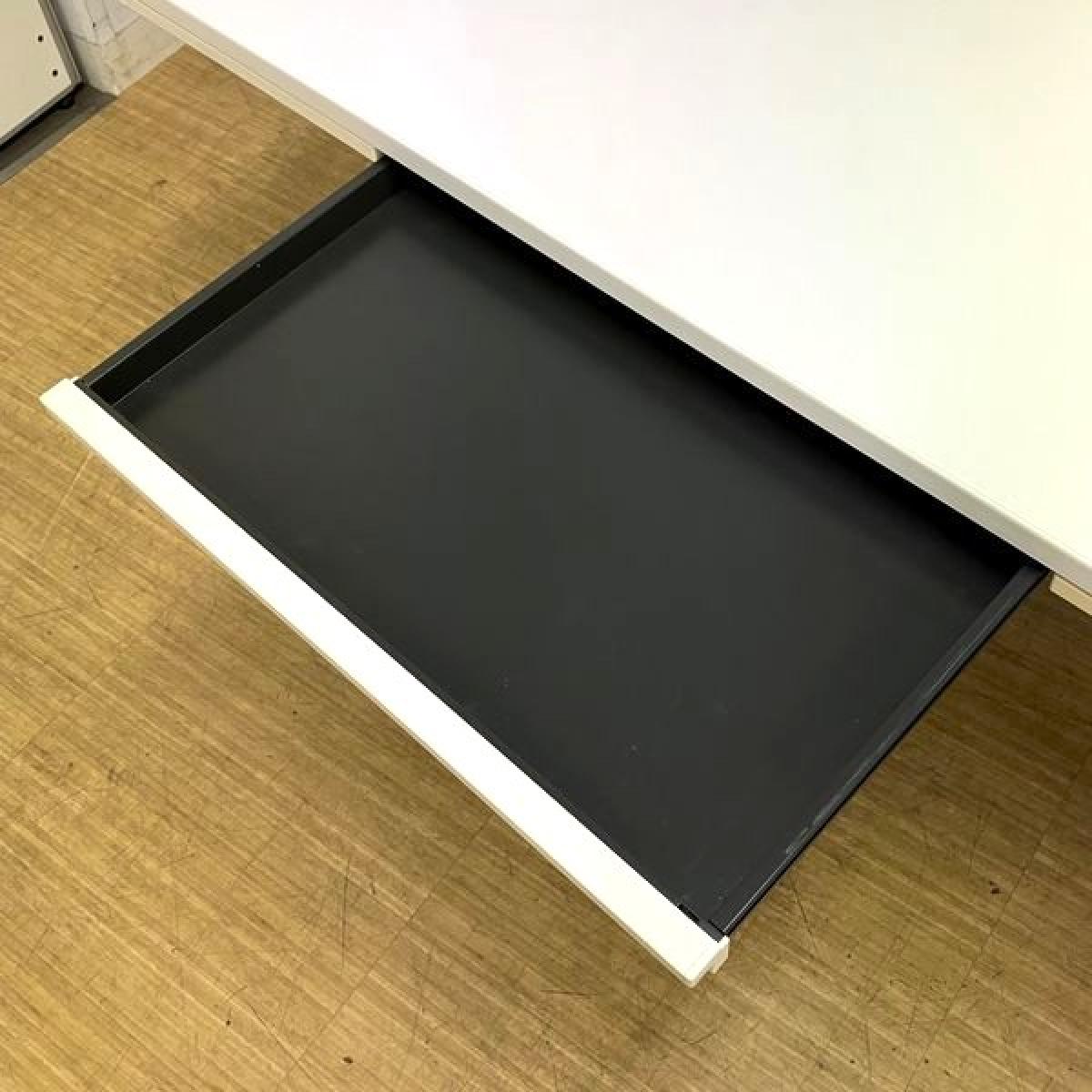 オカムラ アドバンス-Sデスク 平机 センター引出し付 人気のホワイト天板 ゆったりめのサイズのW1400 配線孔2カ所 ※樹脂部分に日焼けあり 【愛知・名古屋・豊田・静岡・浜松】- 名古屋千種店