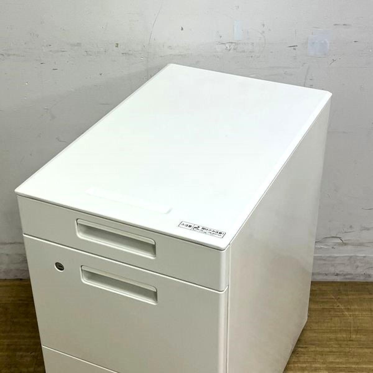 【フリアドデスクや平机の収納力アップに!】■ 3段ワゴン H680㎜ ■ホワイト ■シリンダー錠 ※取っ手日焼けあり/コクヨ(KOKUYO) GTシリーズ