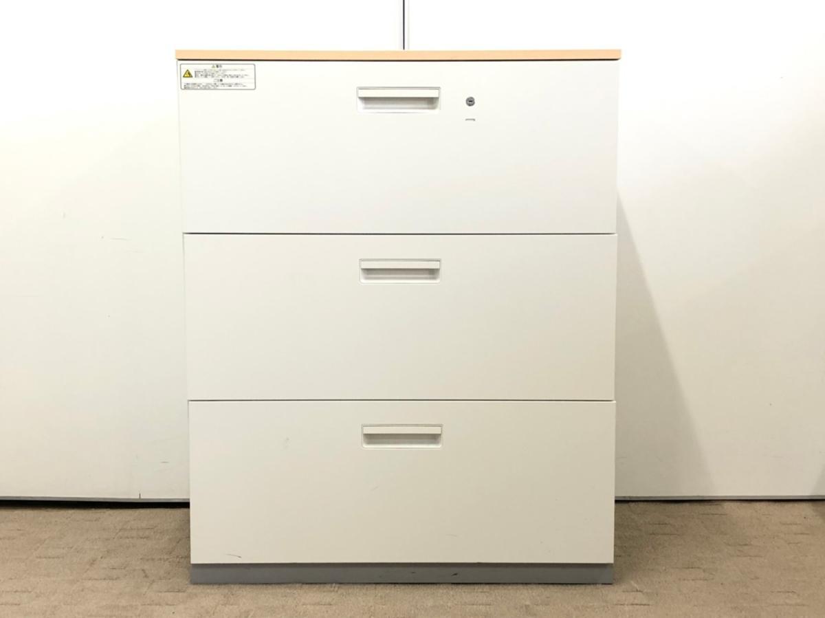 【ナチュラル調天板が人気の引き出し式書庫!】/オススメ(おすすめ) /人気商品【弊社使用欄:A01035218】■3段ラテラル ローキャビネット ■ホワイト ■ナチュラル木目調天板付き ■シリンダー錠/プラス(PLUS)製 L6シリーズ