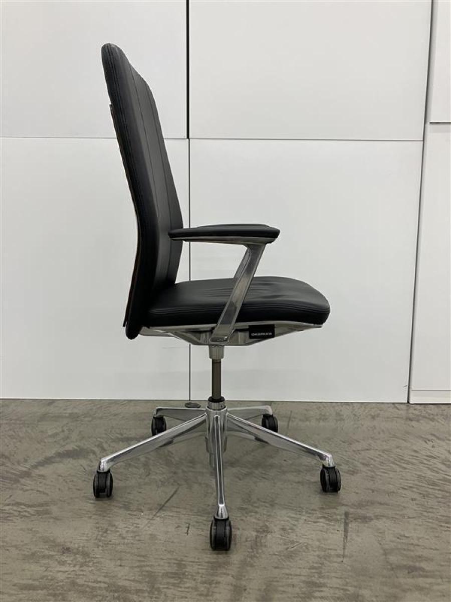 【新品定価40万!】【上質でスタイリッシュなデザインの革張りチェア!】機能と美しさを両立した高級感溢れる両立したカンファレンスシーティング! ■オカムラ/クラフティーチェア(CRAFTIE)/座カラー:ブラック 背裏カラー:ウォールナット エグゼクティブチェア 肘付 ブラック ハイバック
