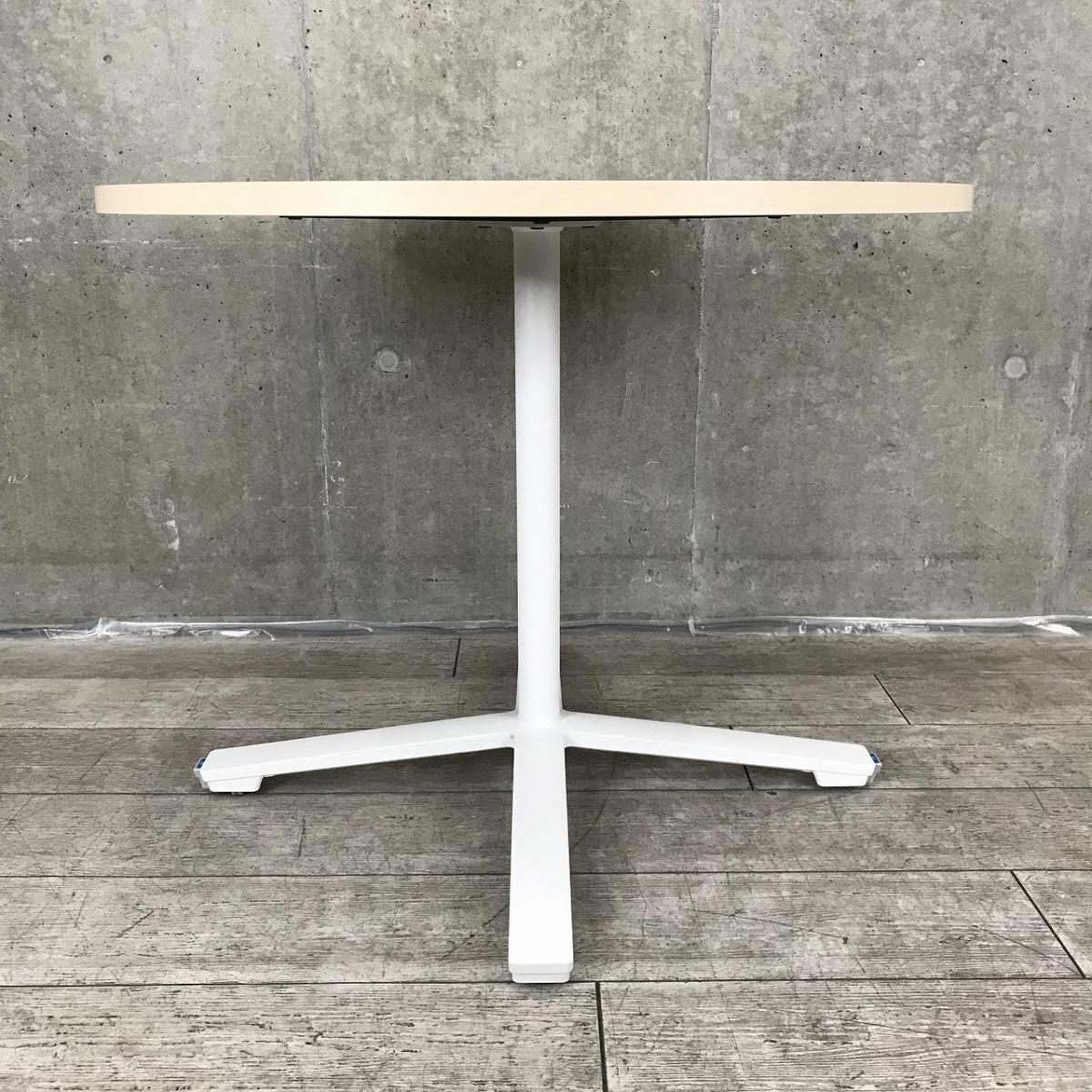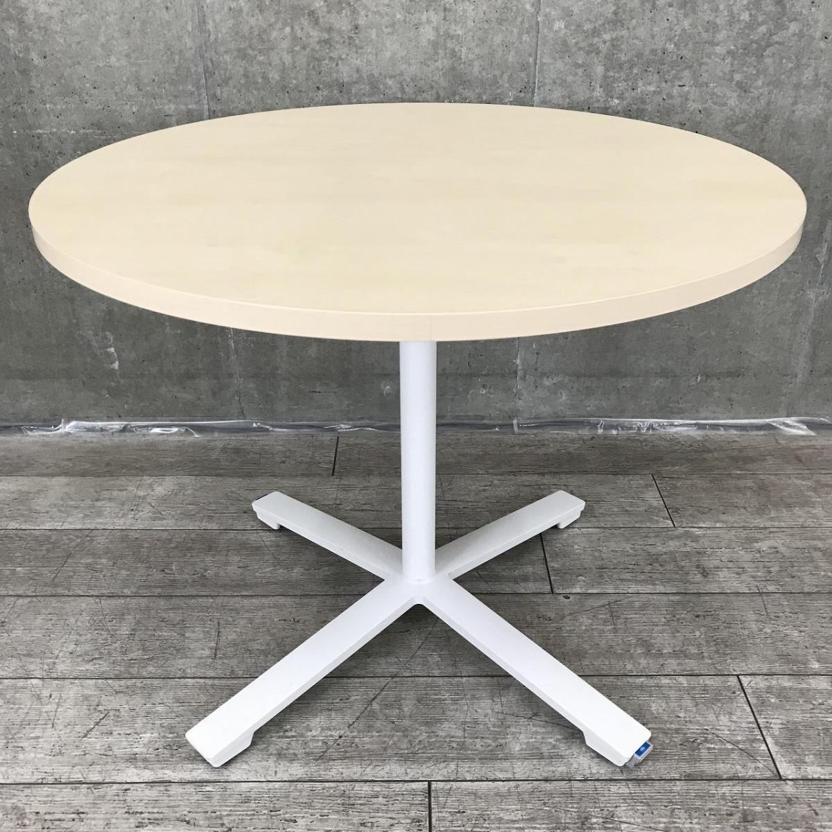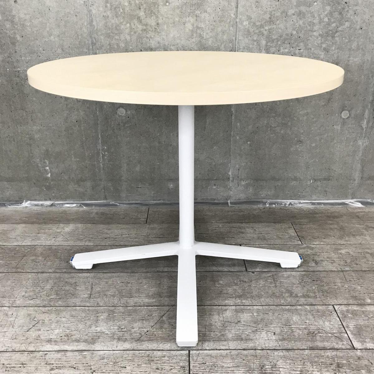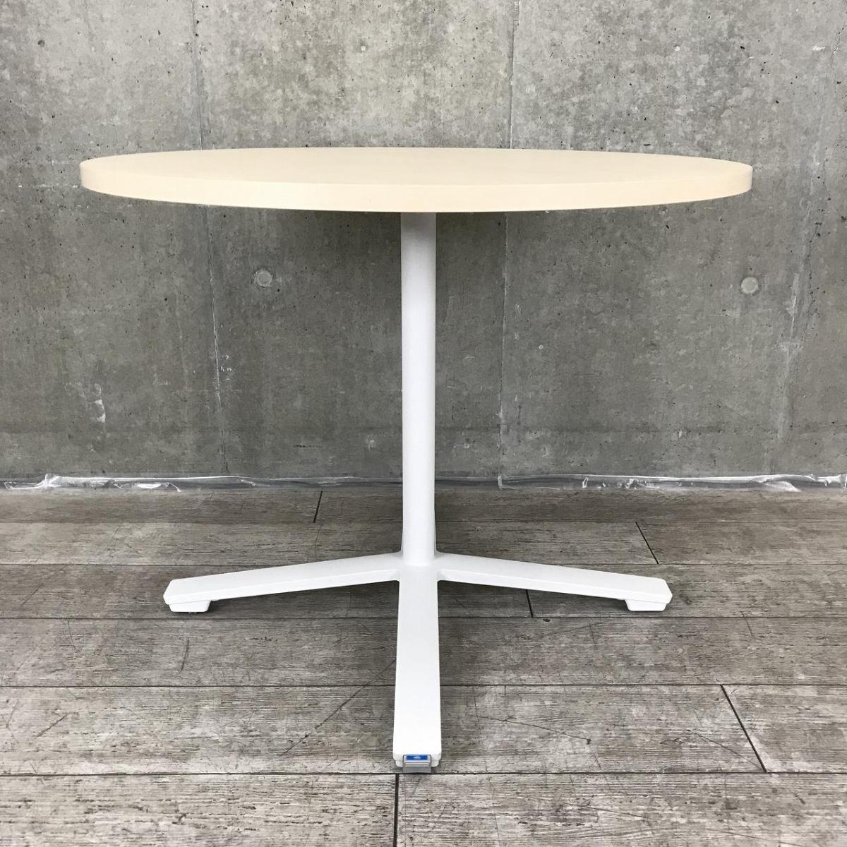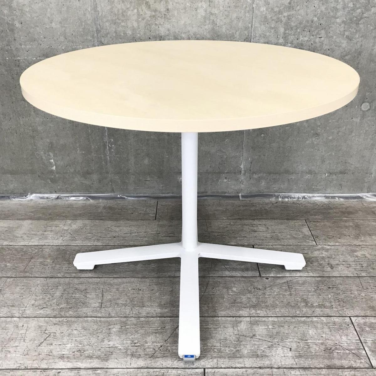【リフレッシュルームや会議スペースに!】【多様なオフィスにフィットするミーティングテーブル】■コクヨ製(KOKUYO)製 ビエナ(VIENA)シリーズ 丸テーブル 幅900㎜ ■キャスター付 ■木目ナチュラル/単柱脚ホワイト- つくば店