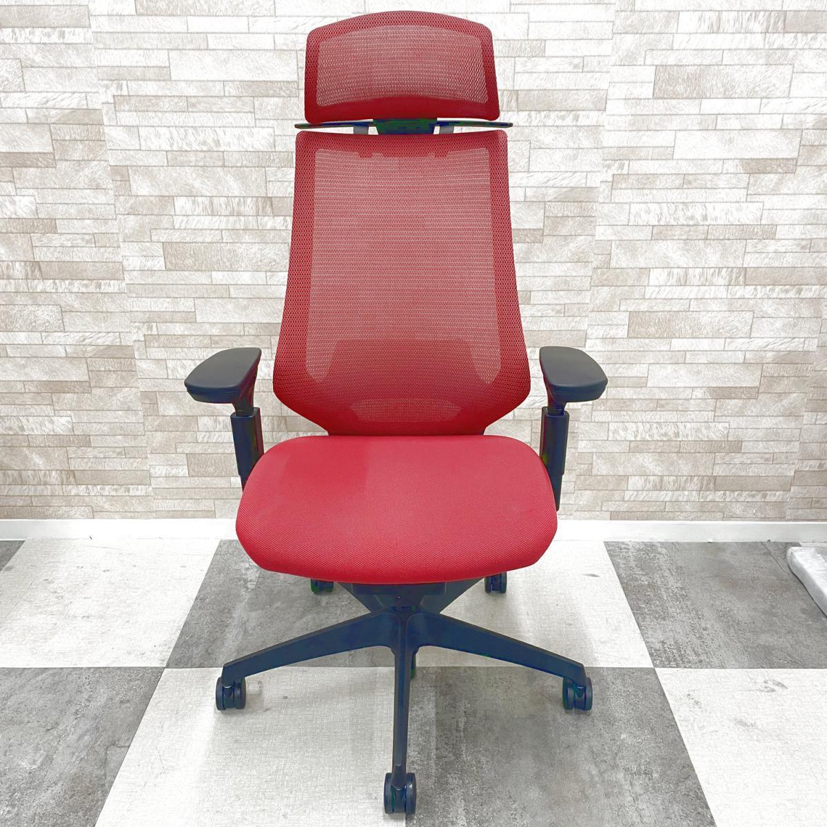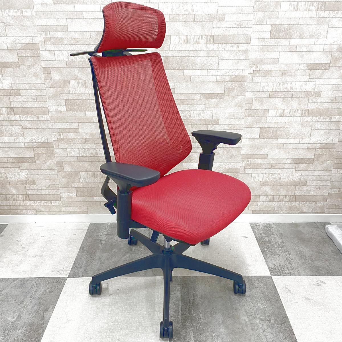 【スタイリッシュなデザインに心地よい座り心地!】■コクヨ デュオラチェア 可動肘付 レッド ヘッドレスト付 ■様々な姿勢に柔軟にフィットする高機能ワーキングチェア!【KOKUYO Duora】- 川崎店