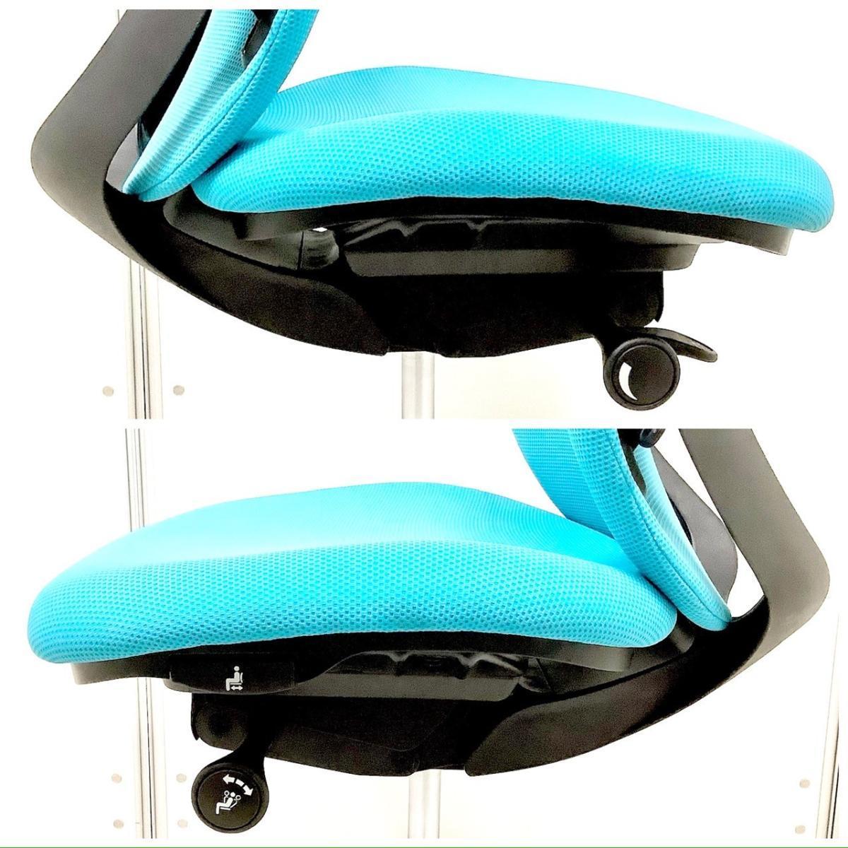 - 座面左下のダイヤルでリクライニングの固定と解除が行えます。 前傾ポジションをとることも可能です。