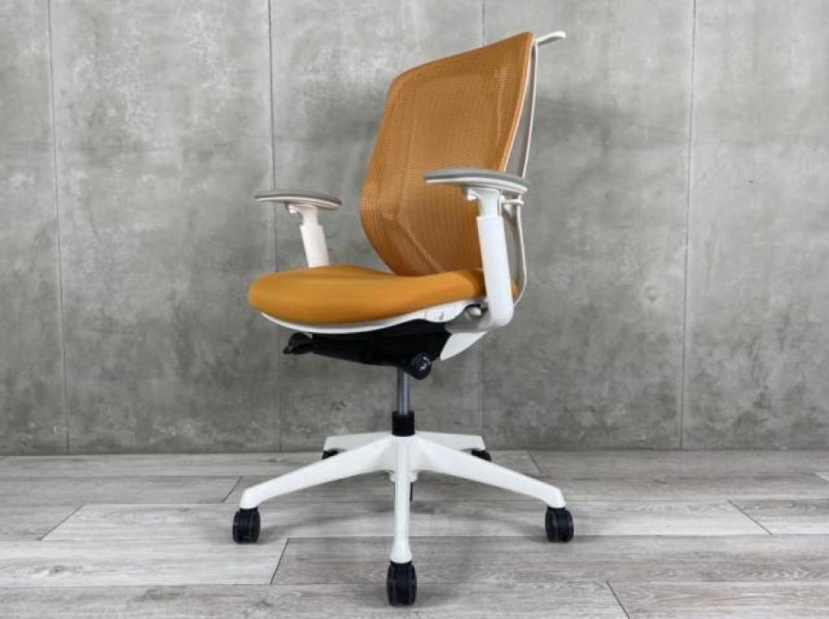 【在庫入替セール品!】【背のカーブを変えられる新感覚のオフィスシーティング!】■オカムラ シルフィーチェア 可動肘付 オレンジ ハンガー付 ホワイトフレーム ■新感覚のオフィスシーティング!【Okamrua Sylphy】