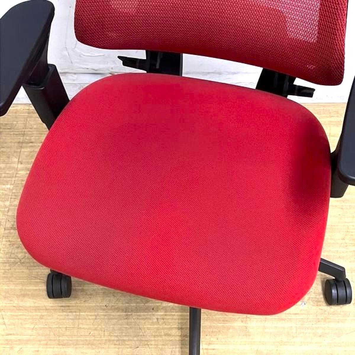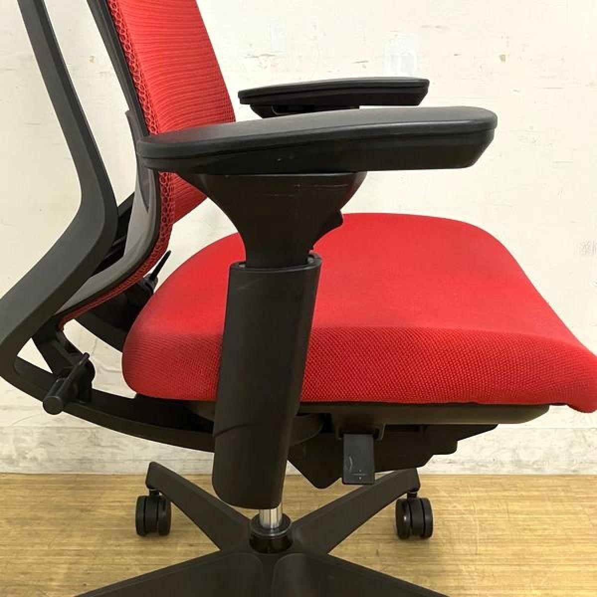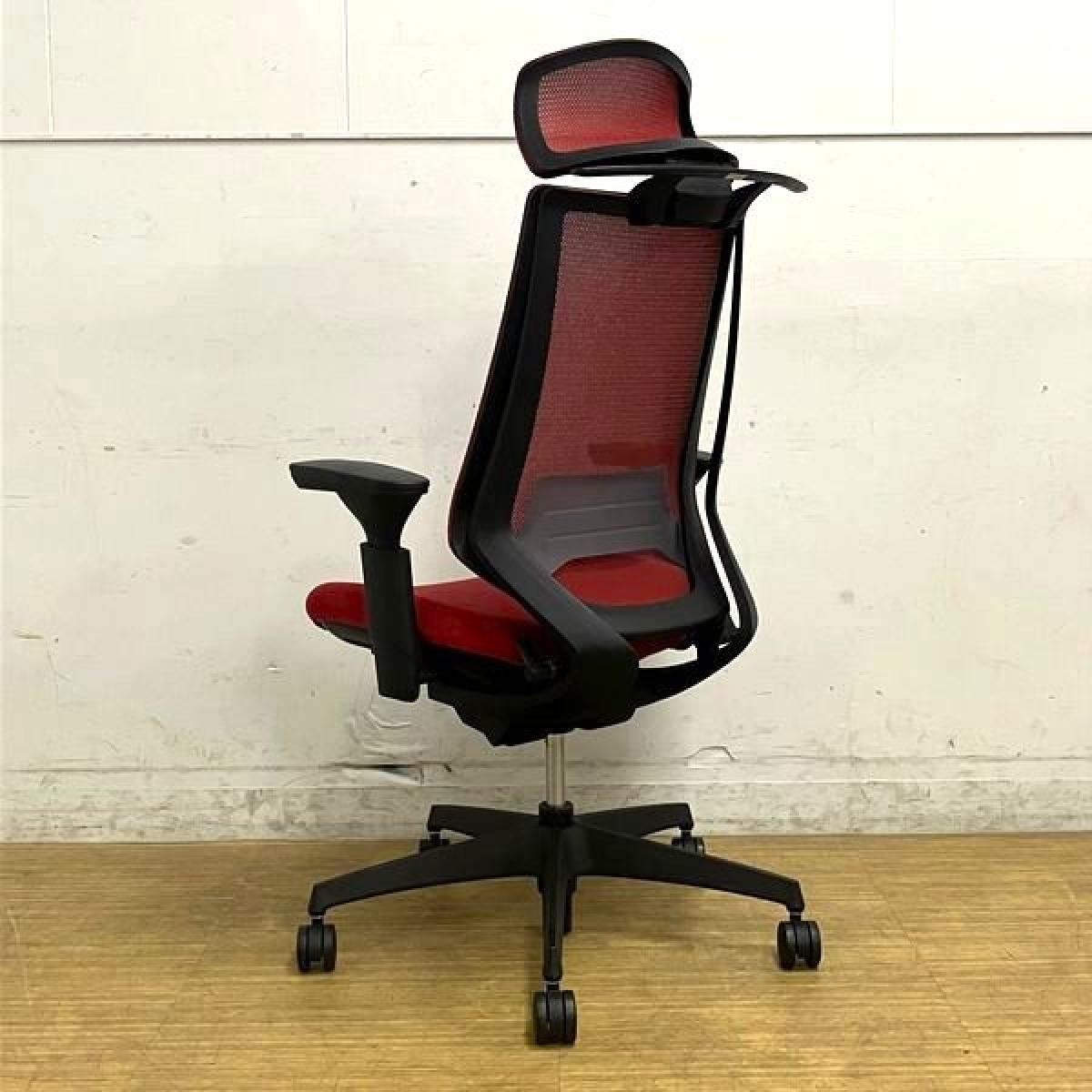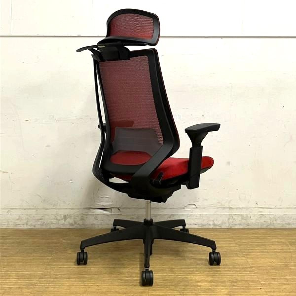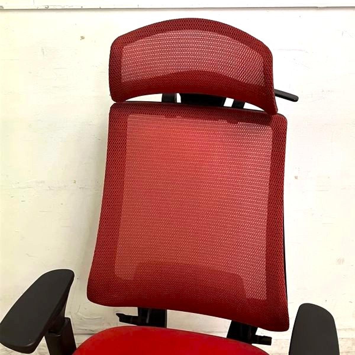 コクヨ デュオラチェア メッシュタイプ ヘッドレスト付き 可動肘 カーマイン(レッド)×ブラックフレーム ランバーサポート&コートハンガー付き- 名古屋千種店