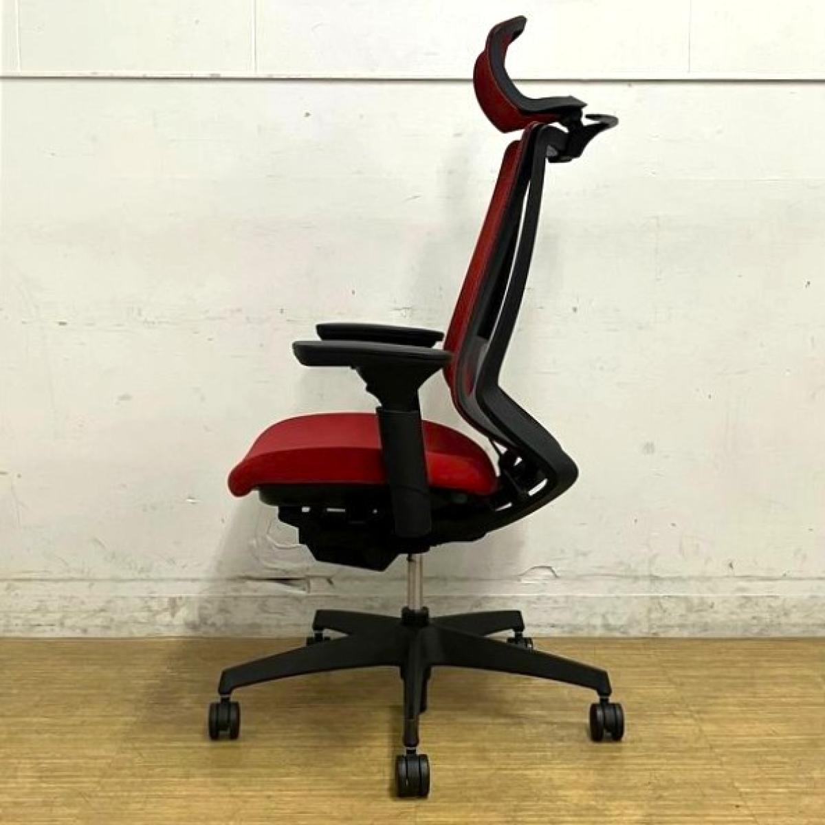 【スタイリッシュなデザインに心地よい座り心地!】■コクヨ デュオラチェア 可動肘付 レッド ヘッドレスト付 ■様々な姿勢に柔軟にフィットする高機能ワーキングチェア!【KOKUYO Duora】