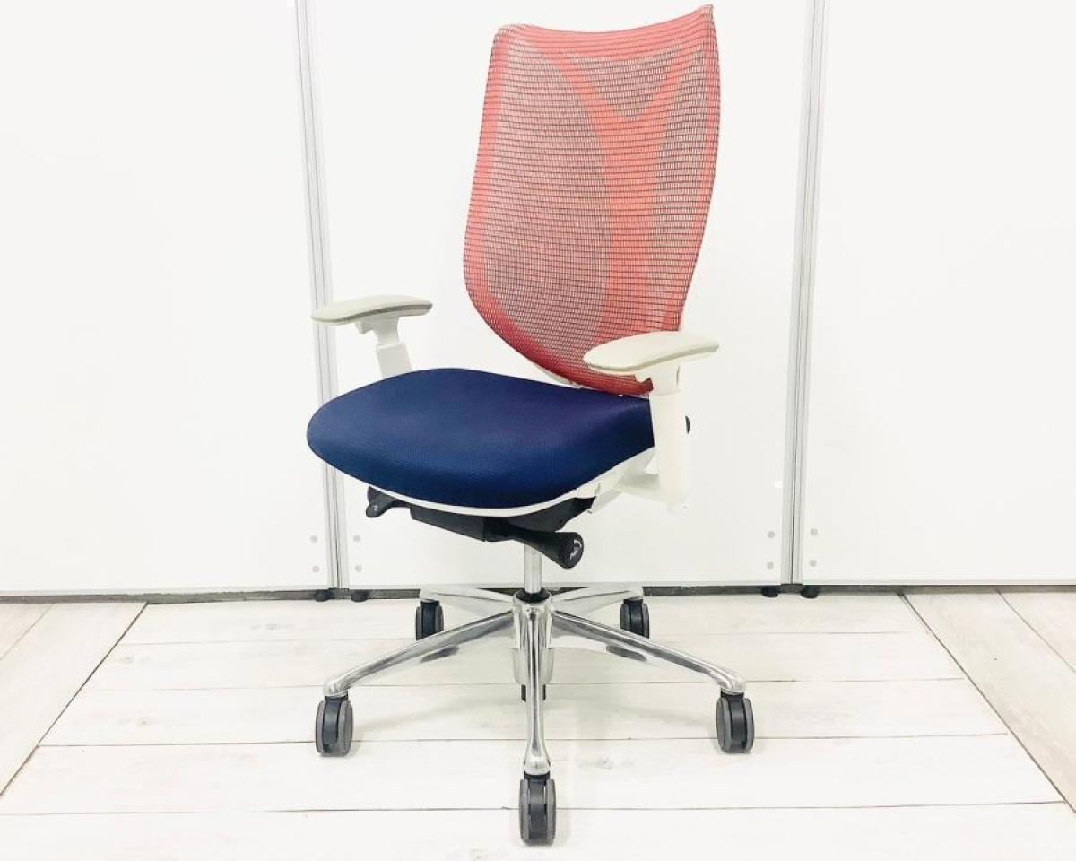 【在庫セール品・4脚限定】【T12】■Okamura/オカムラ ・Sabrina/サブリナ 肘付ハイバック ■座面:ダークブルー 背面:レッド ■デザインアーム(可動肘) ■ホワイトフレーム