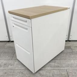 オカムラ製アドバンスシリーズの珍しいナチュラル天板の3段脇机が入荷しました!