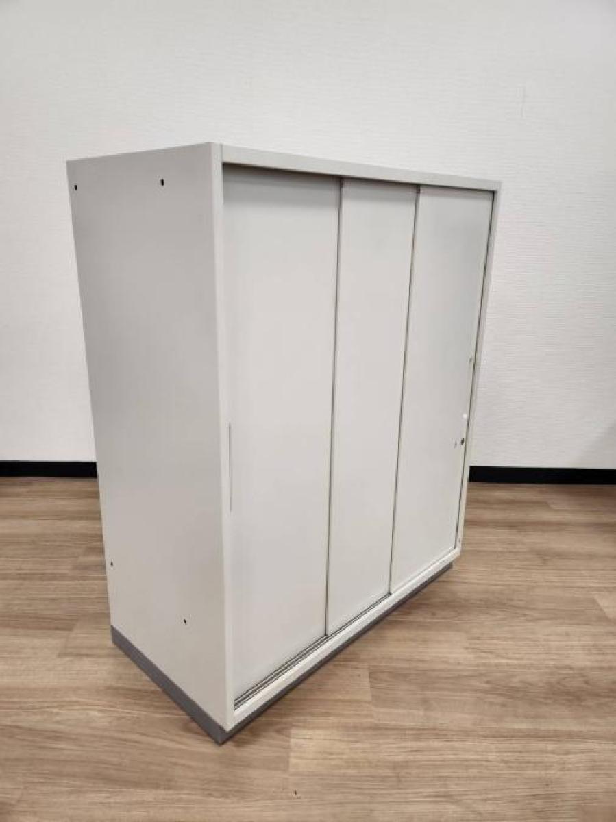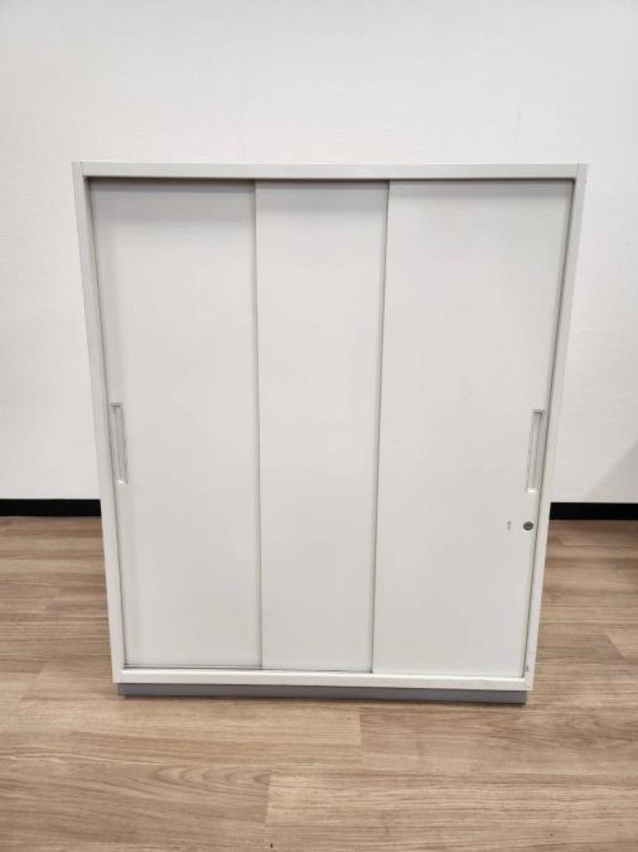 【スペースを取らない引き違い書庫!】■プラス製 3枚扉引き違い ローキャビネット ■ホワイト ■シリンダー錠 ※ベース無し ■開閉スムーズでないためお求めやすく! 【2508】弊社使用欄【A01029627】- 埼玉本店