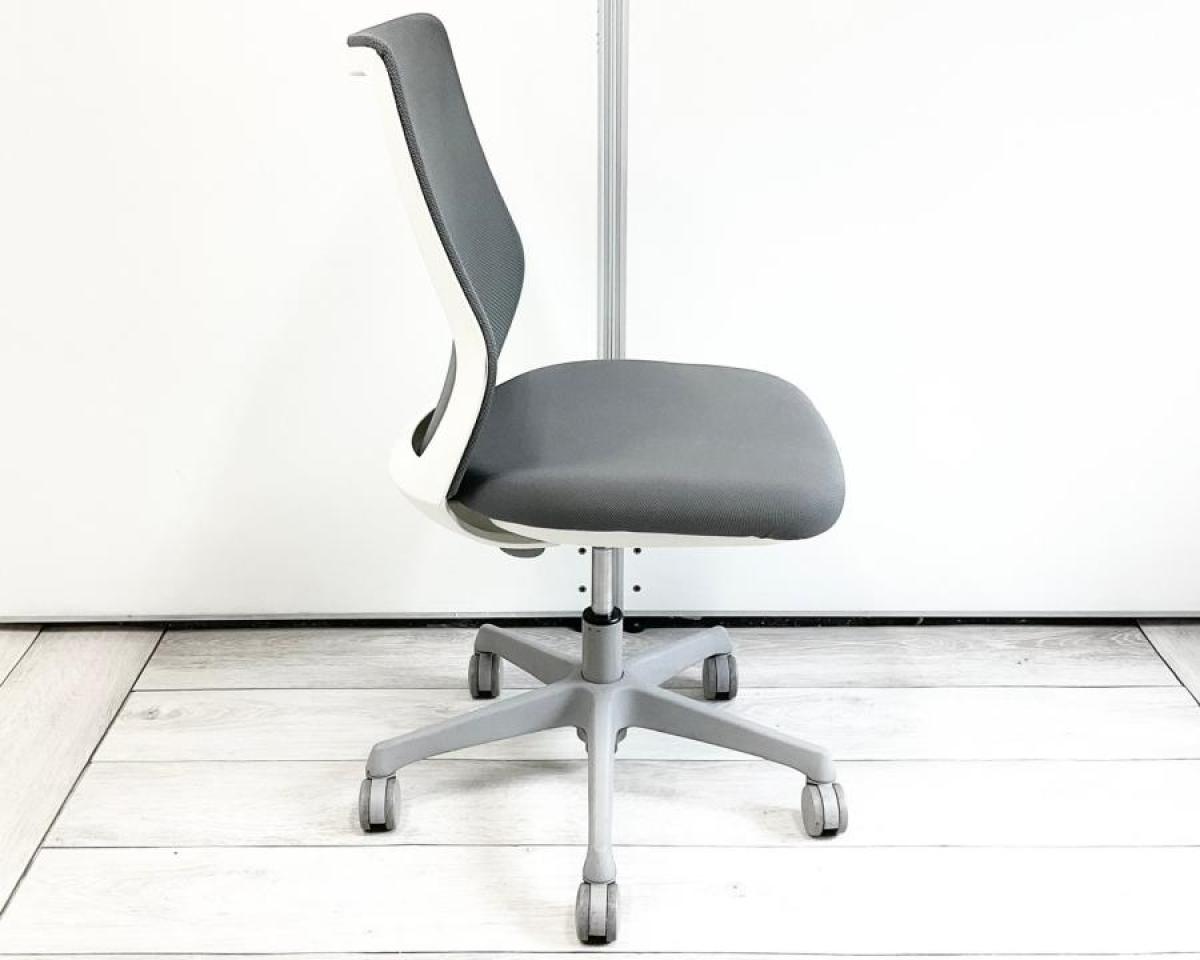 【やわらかな座り心地を実現するメッシュチェア!腰への負担を減らすS字形状!】■オカムラ(okamura) CG-Mチェア 肘無し ローバック 背面メッシュ ■グレー× ホワイトシェル