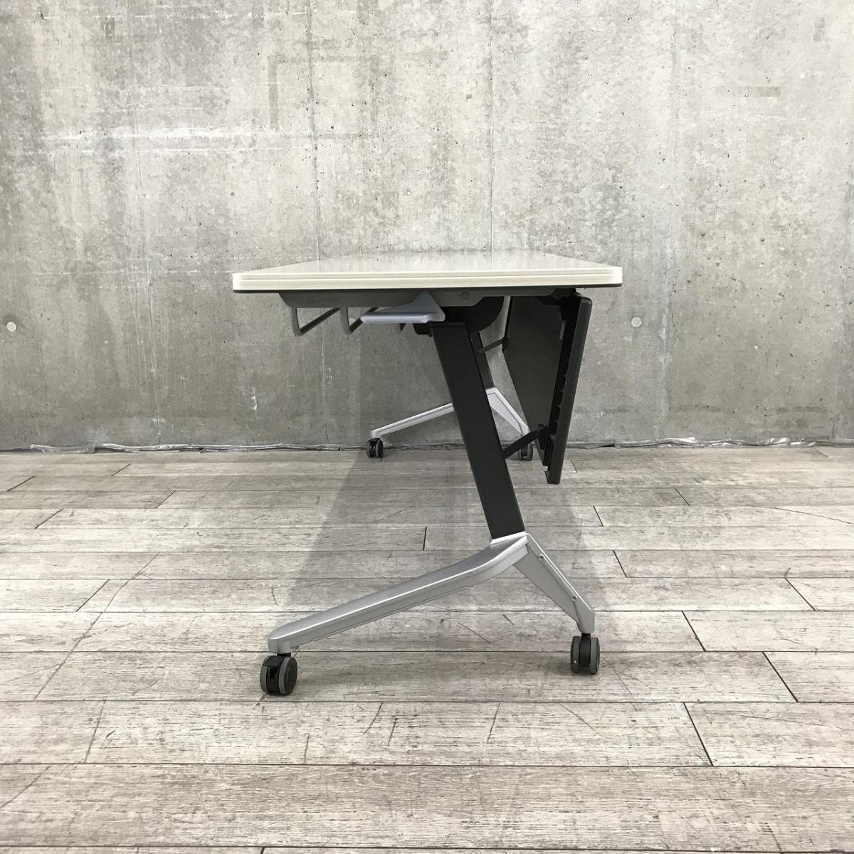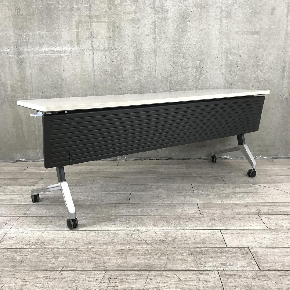 【会議・研修室などに・使わないときは畳んで省スペース!】■コクヨ(KOKUYO)製 KT-620シリーズ サイドスタックテーブル フラップテーブル ■幕板付き W1800×D600㎜ ■グレー 【2~3名での使用に最適】- 千葉店