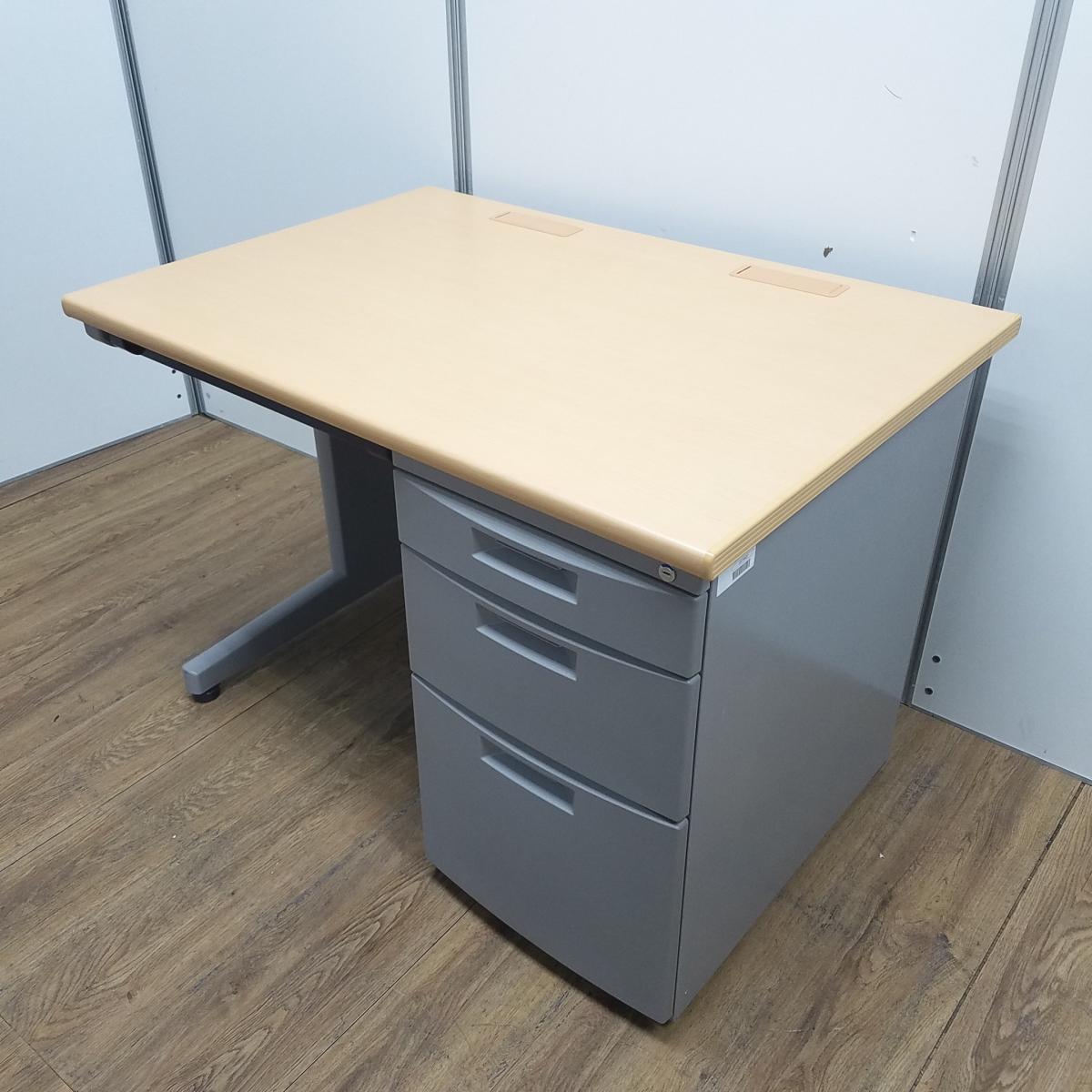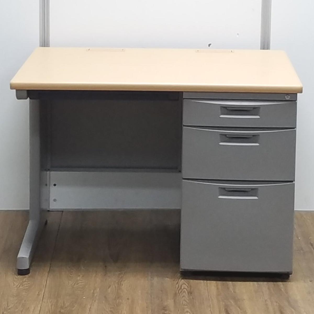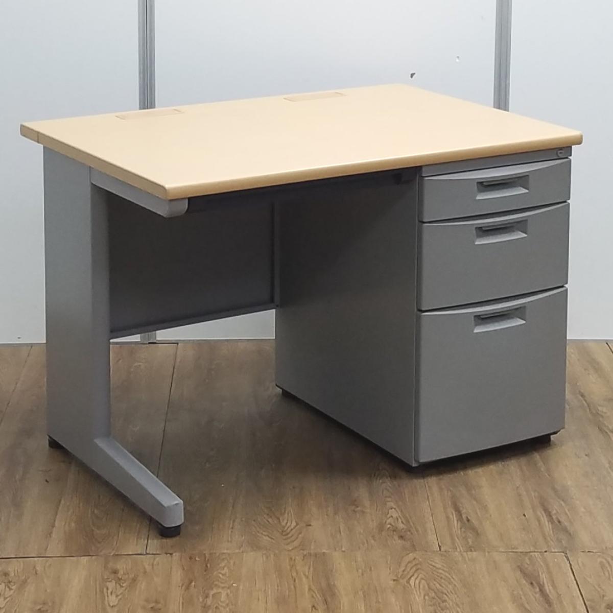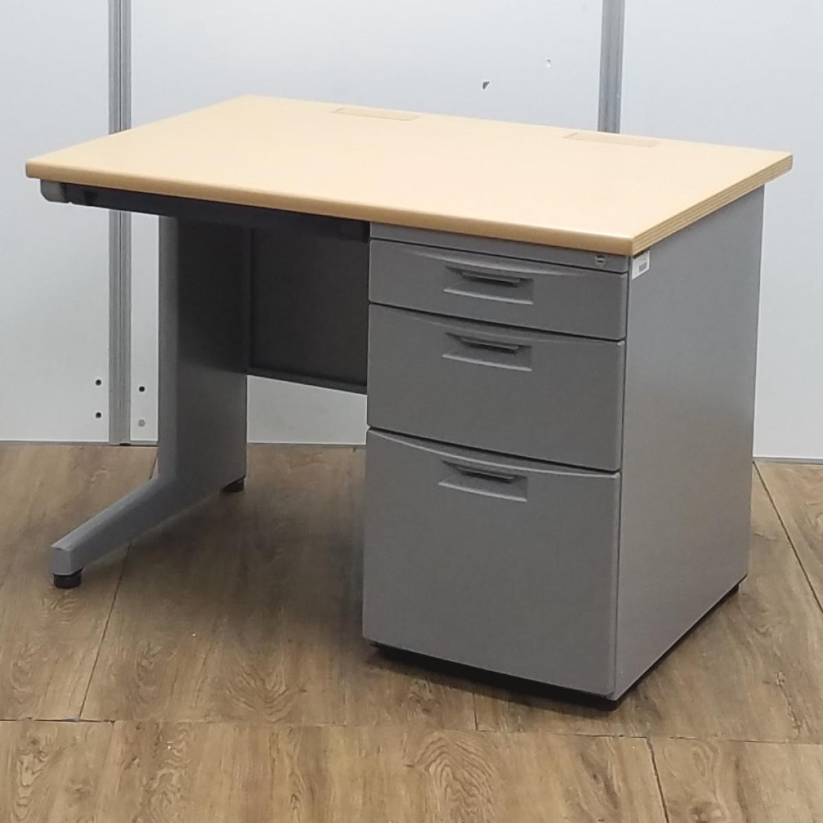 ★【T12】【商品入替のため、残り6台限り】イトーキ製 CZN ナチュラル天板 本体:グレー W1000xD700xH700サイズ シリンダー 幅1000コンパクトタイプ! 使い勝手の良い3段収納の片袖机! W1000片袖机!!