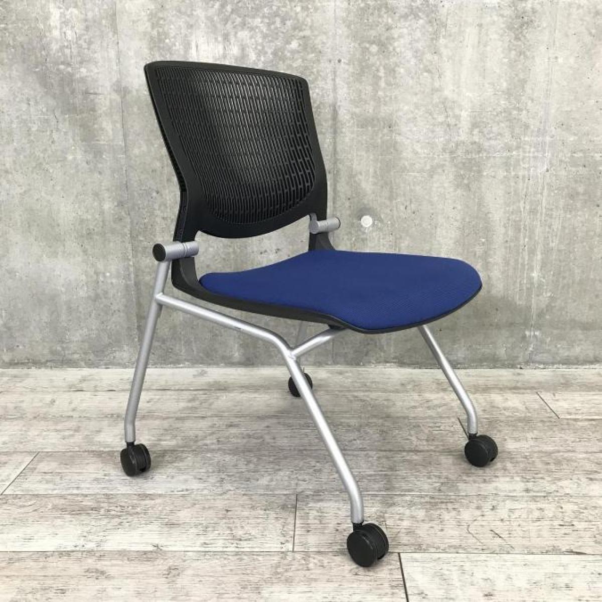 小肘付ネスティングチェア/背面クッション付き/ネイビー/オカムラ製/福岡/天神/博多/中古/安い