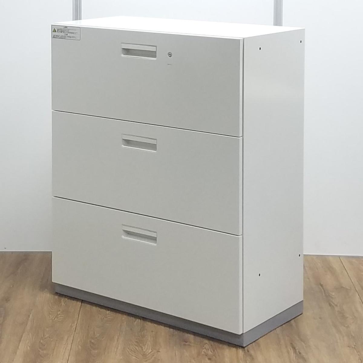 プラス(PLUS)製 L6 ホワイト シリンダー ローキャビネット オフィスで人気の必需品! 使いやすい引き出し式キャビネット! キングファイルなど収納におすすめ 3段ラテラル書庫!!- 京都東寺店