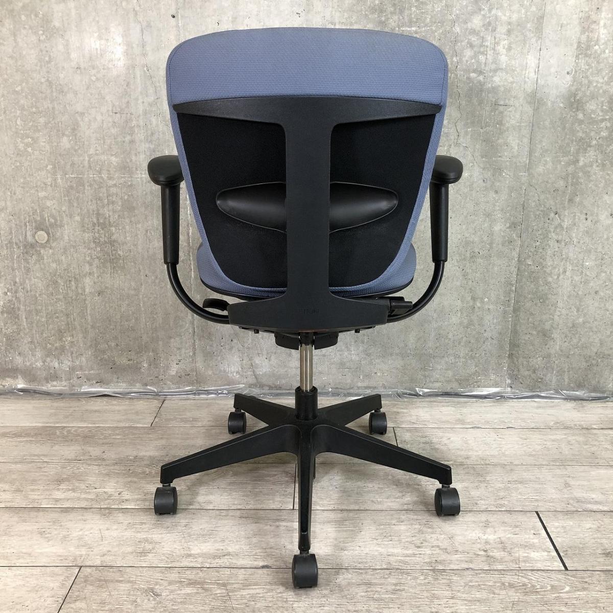 【一人ひとりにマッチする座り心地!姿勢の変化にフレキシブルに対応!】■イトーキ(ITOKI)製 プラオチェア 肘付 ローバック ■サークル肘 ■背面ストロングブルー×座面ブラック オフィスバスターズ 東大阪店【K11】
