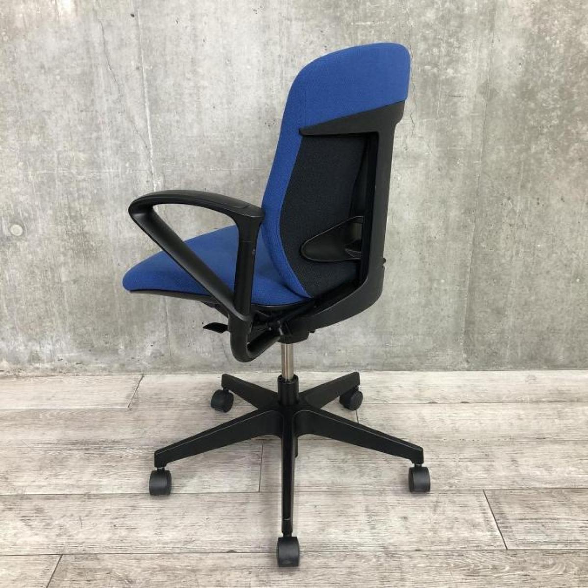 【一人ひとりにマッチする座り心地!姿勢の変化にフレキシブルに対応!】■イトーキ(ITOKI)製 プラオチェア 肘付 ローバック ■サークル肘 ■背面ストロングブルー×座面ブラック オフィスバスターズ 東大阪店【K11】