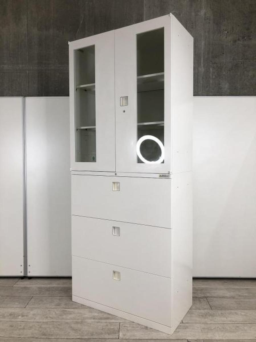 オカムラ(okamura)製 レクトライン 書庫セット ガラス扉両開き+3段ラテラル ハイキャビネット在庫がある店舗一覧
