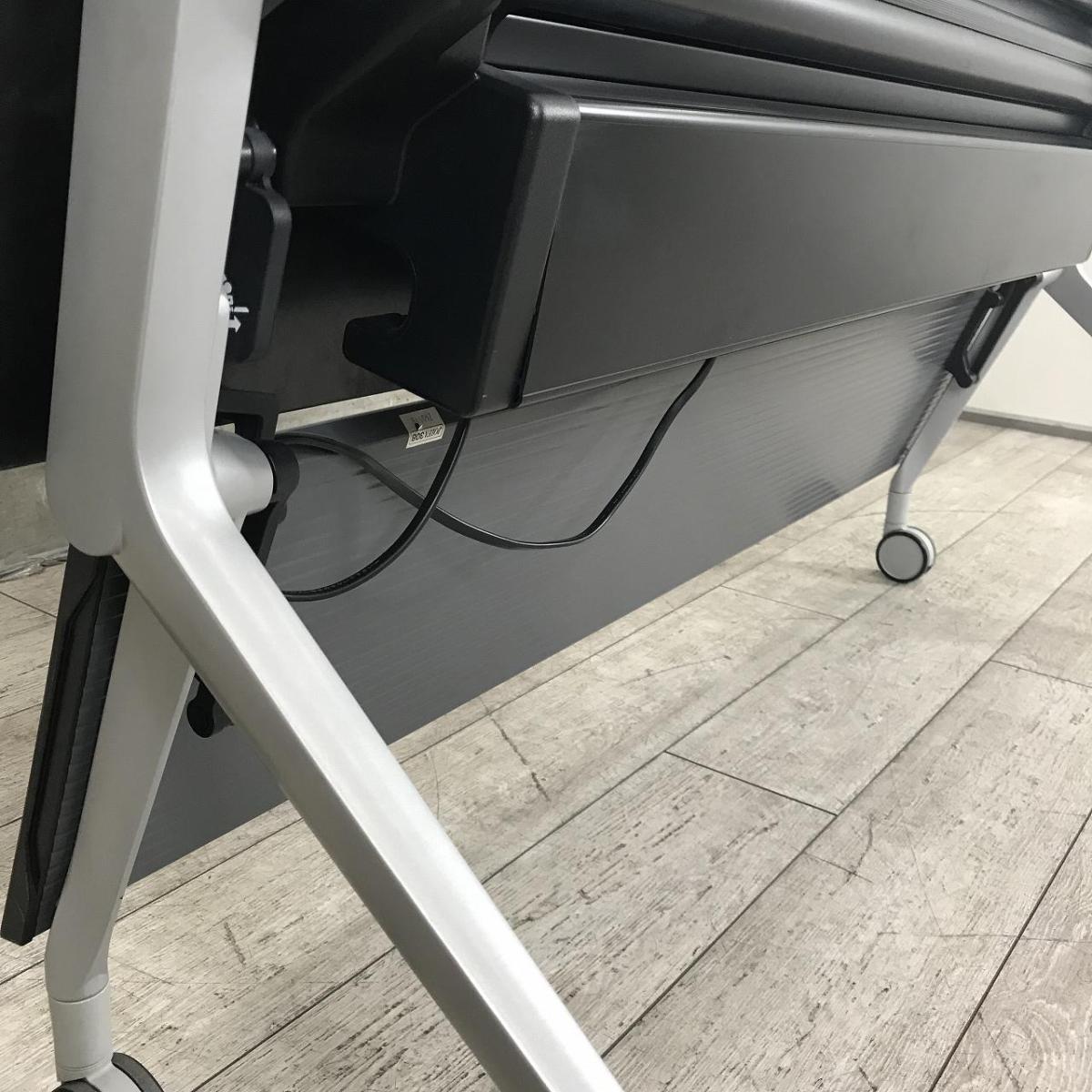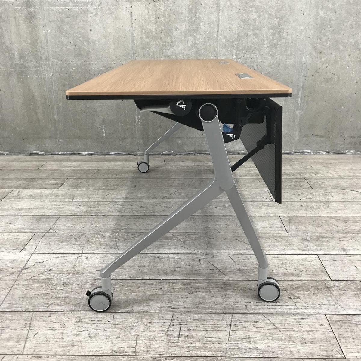 【折りたたみ収納が秀逸!スタイリッシュなデザインで高品質!】■オカムラ(okamura)製 インターアクトNT(INTER ACTNT) サイドスタックテーブル W1500×D600×H720mm ■コンセント付き ■幕板/キャスター付 ■木目調ナチュラル天板【2508】弊社使用欄【A01032321】- 埼玉本店