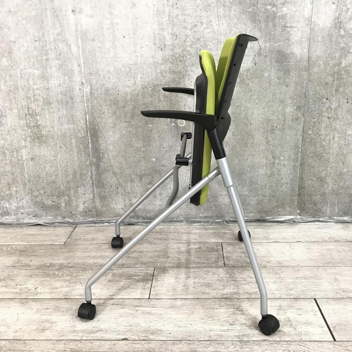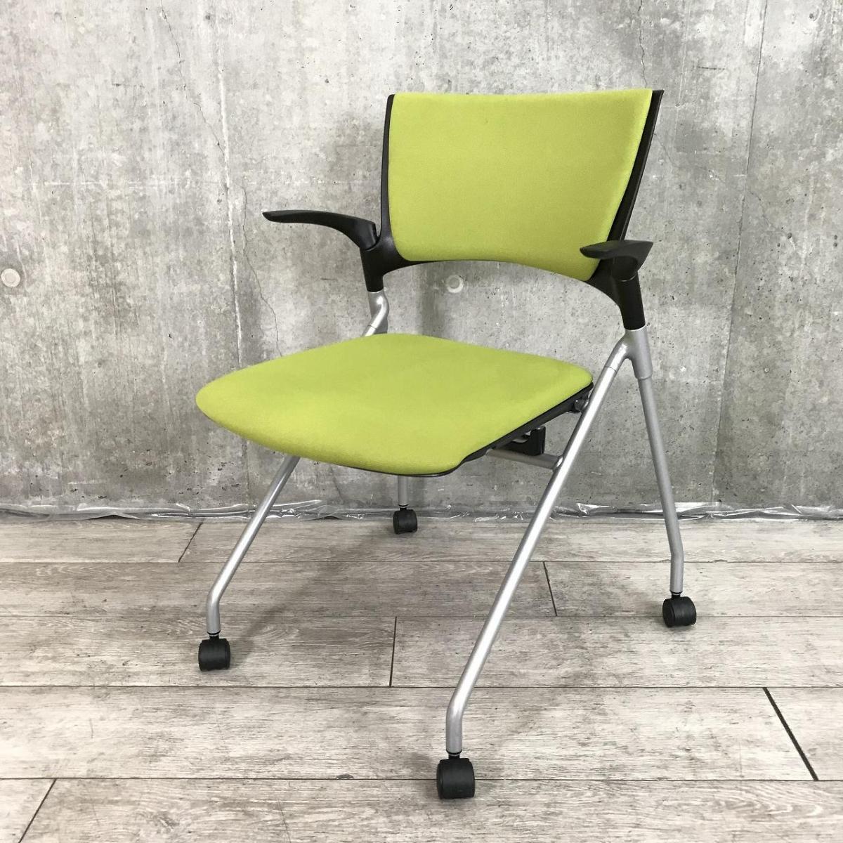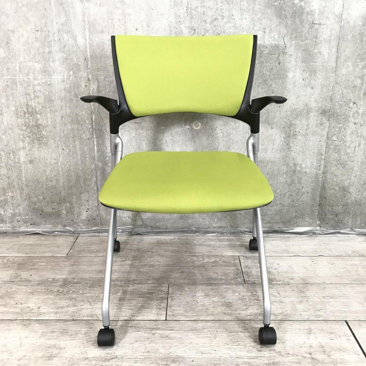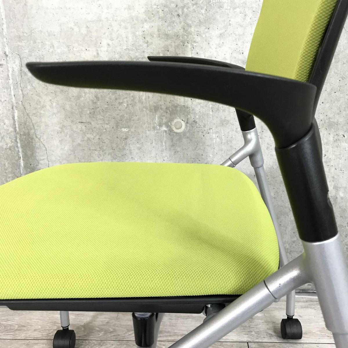【重ねて収納!使い勝手抜群のネスティングチェア!】■イトーキ (ITOKI) マノス (MANOSS) チェア ネスティングチェア ミーティングチェア 肘付き 背パッドなし ■背:ホワイト/座グリーン ■キャスター付 ■固定肘 ■背面樹脂メッシュ