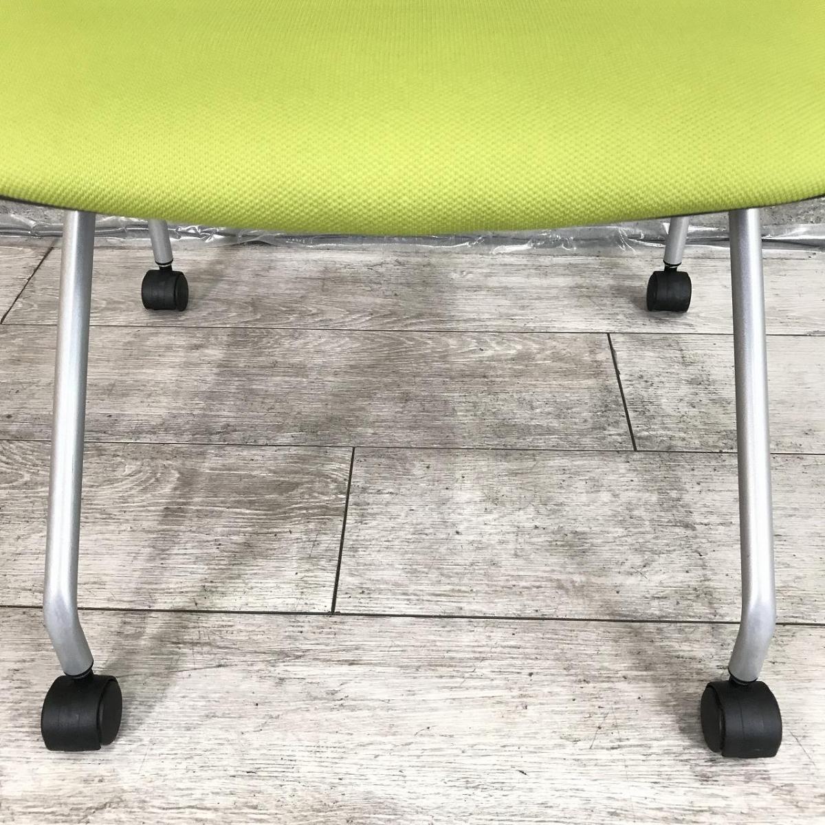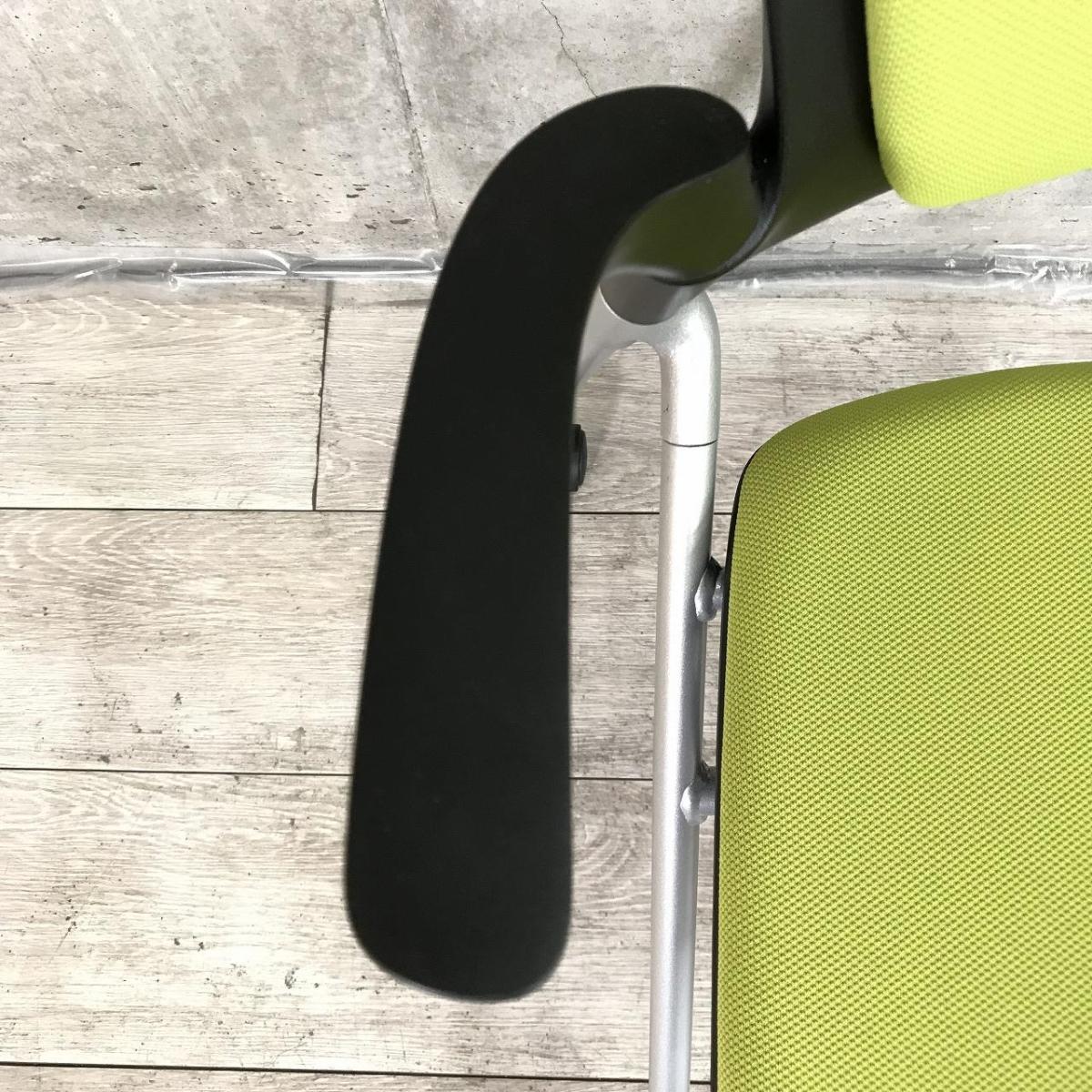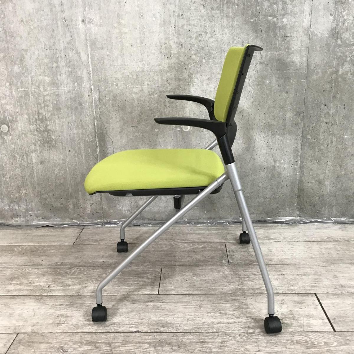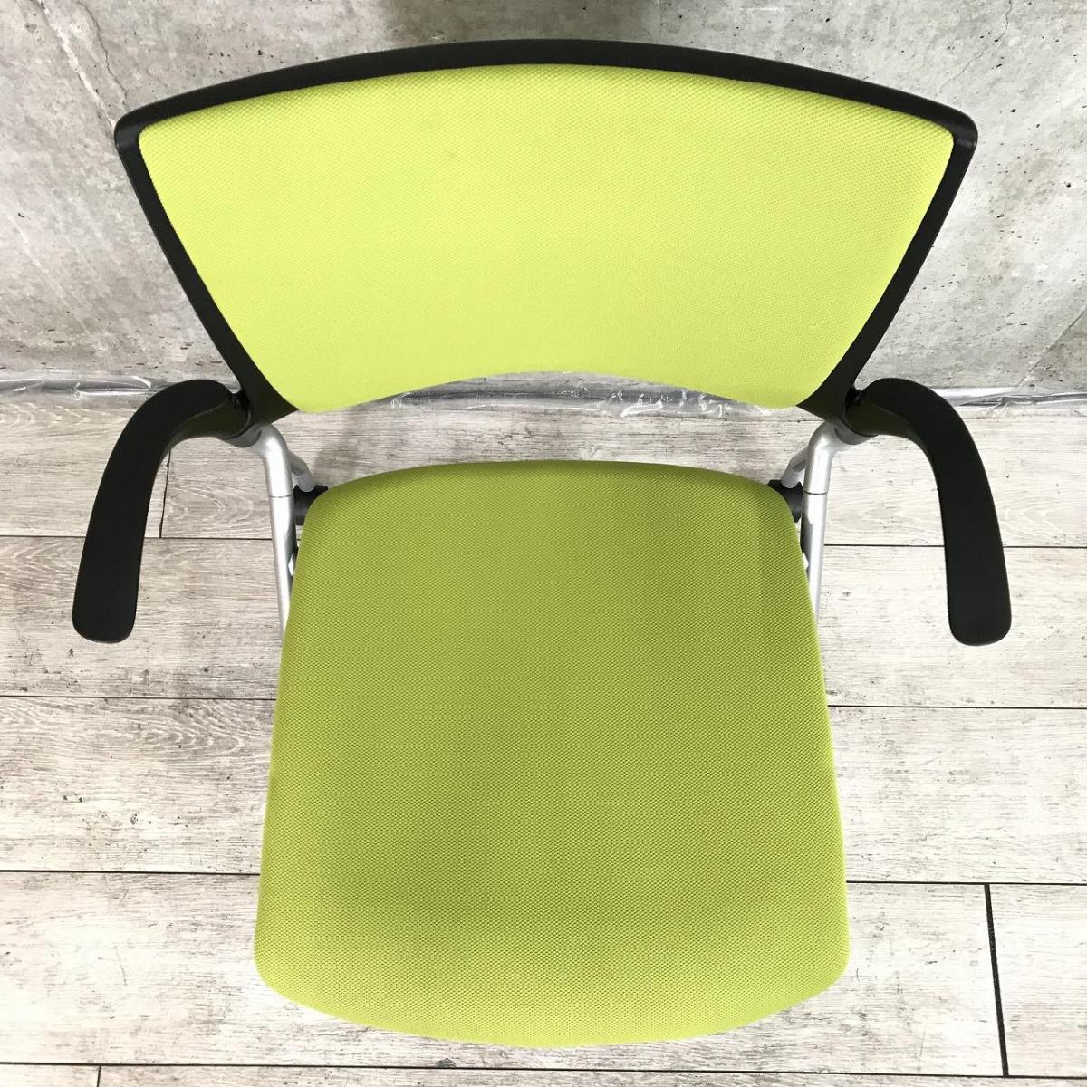 【重ねて収納!使い勝手抜群のネスティングチェア!】■イトーキ (ITOKI) マノス (MANOSS) チェア ネスティングチェア ミーティングチェア 肘付き 背パッドなし ■背:ホワイト/座グリーン ■キャスター付 ■固定肘 ■背面樹脂メッシュ