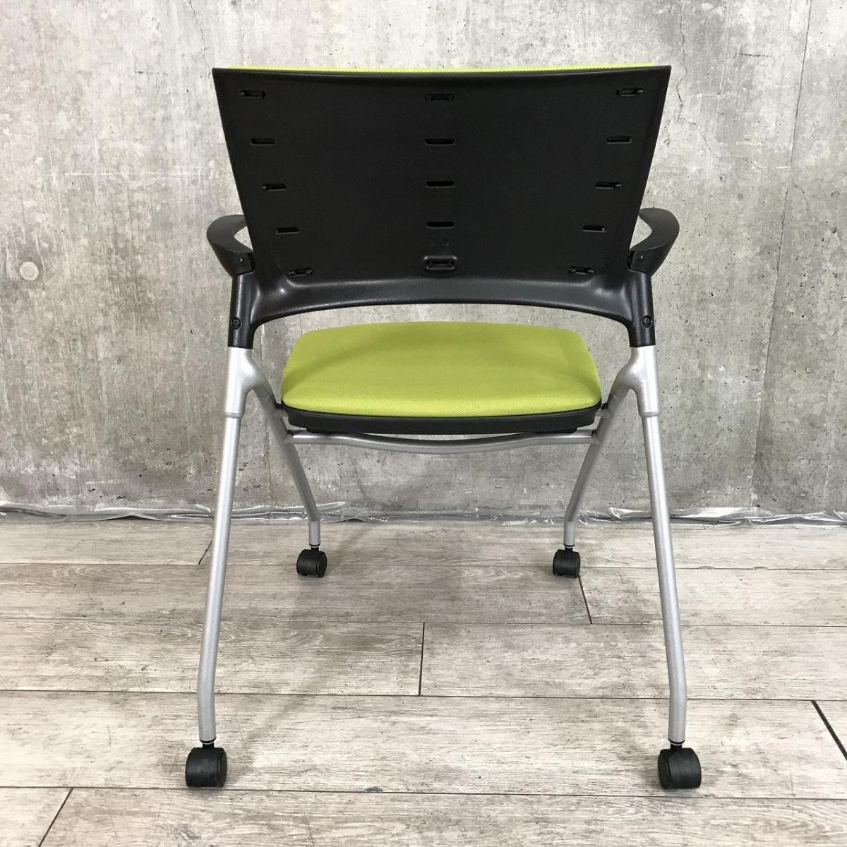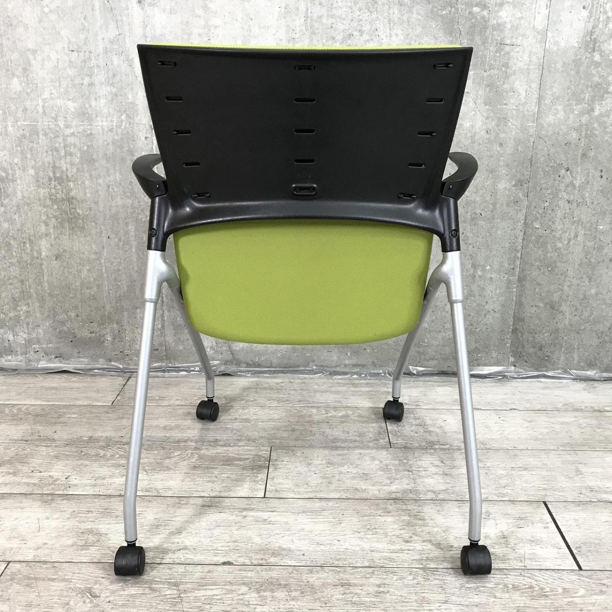 【在庫入替セール】【4脚限定】【平行ネスティングで省スペース化!】■イトーキ(ITOKI)製 マノスチェア(MANOSS)肘無 ネスティングチェア ミーティングチェア ■背パッド キャスター付 ■アイビーグリーン×ブラックシェル