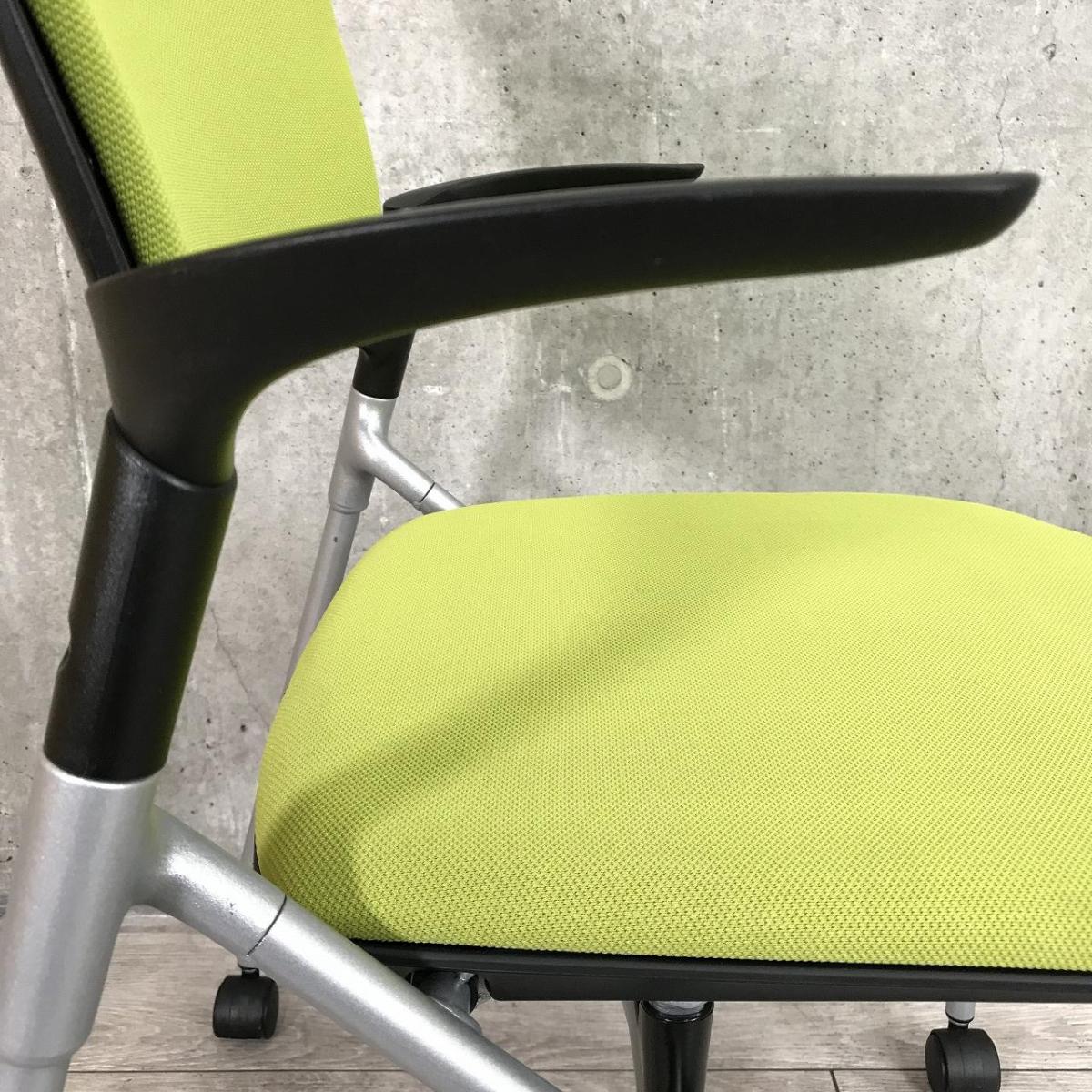 【平行ネスティングで省スペース化!】■イトーキ(ITOKI)製 マノスチェア(MANOSS) 肘付 ネスティングチェア ミーティングチェア ■背パッド キャスター付 ■モスグリーン×ブラックシェル- 豊中・尼崎店