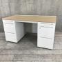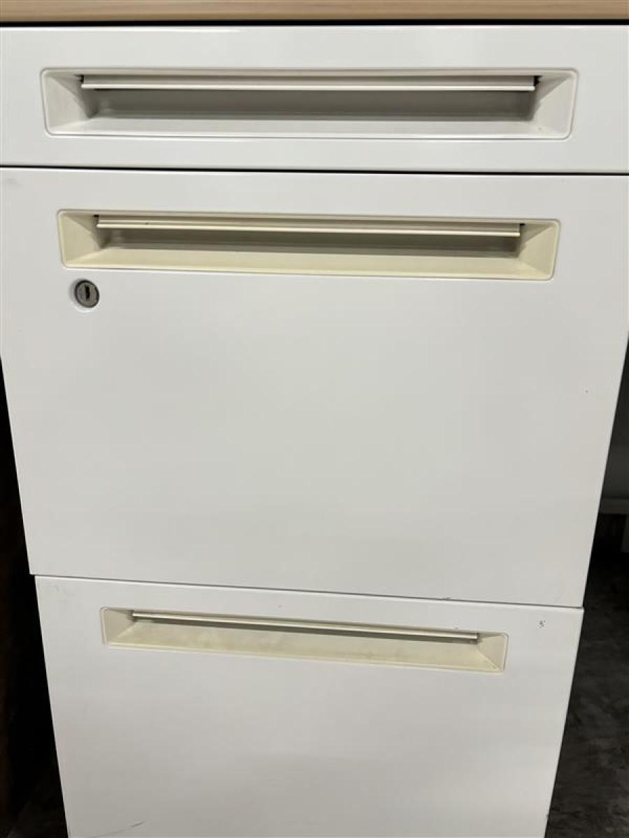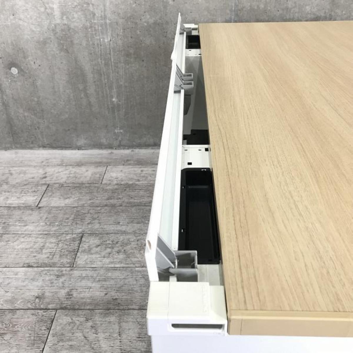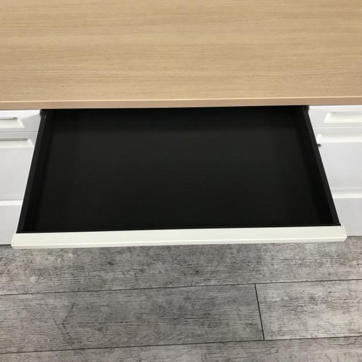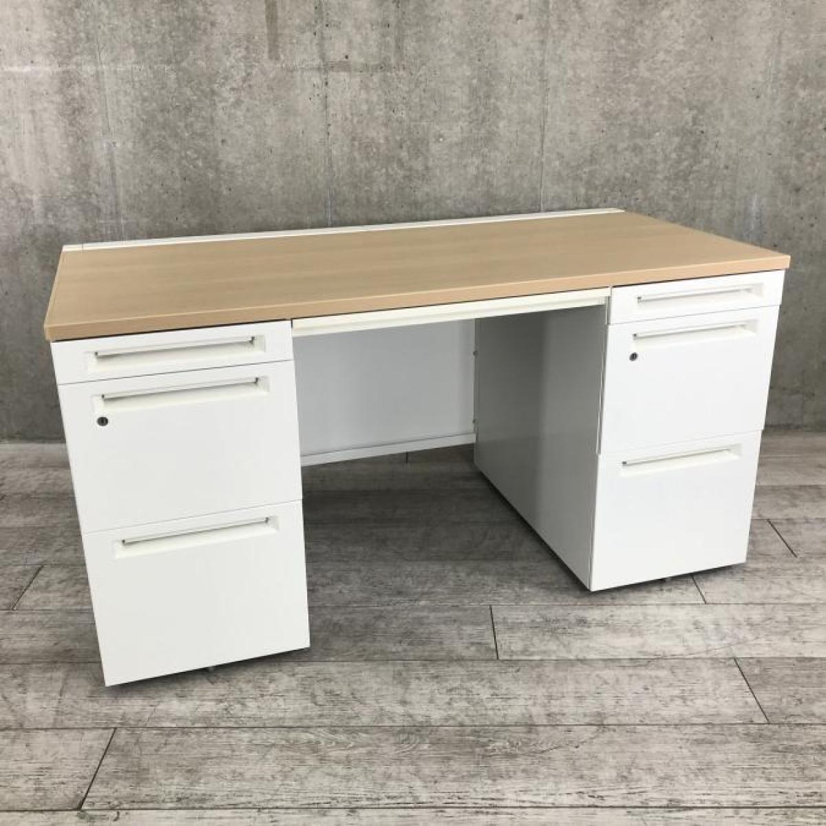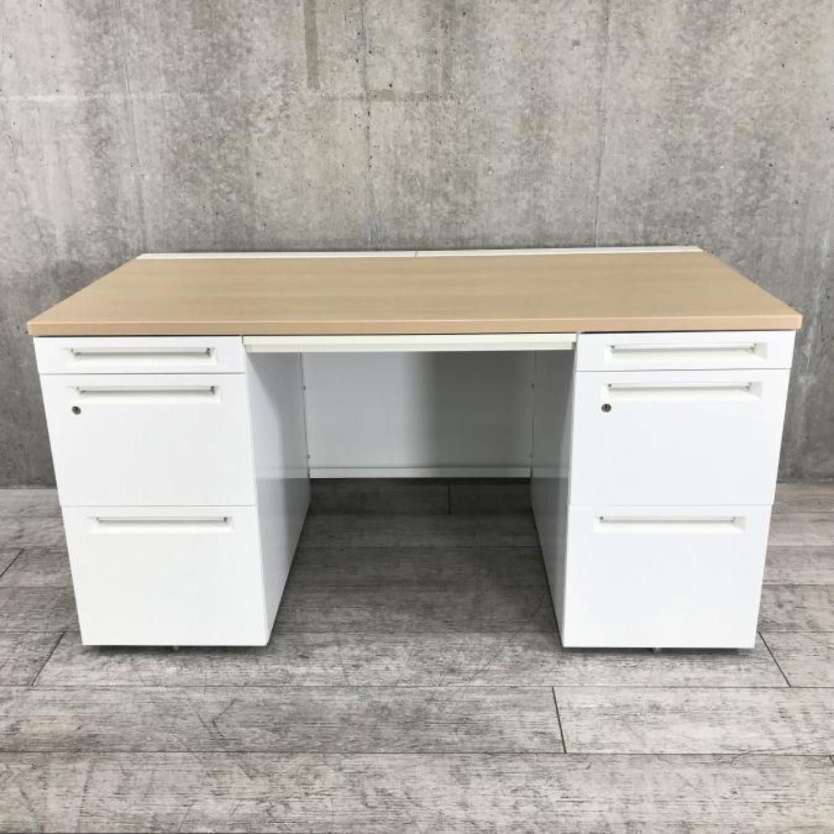 【訳あり品】両袖タイプで収納たっぷり!幅1400㎜でワークスペースもしっかり確保! ■オカムラ/アドバンス/天板ナチュラル/本体ネオホワイト 引出付き シリンダー錠 W1400×D700×H720㎜- 立川・八王子店
