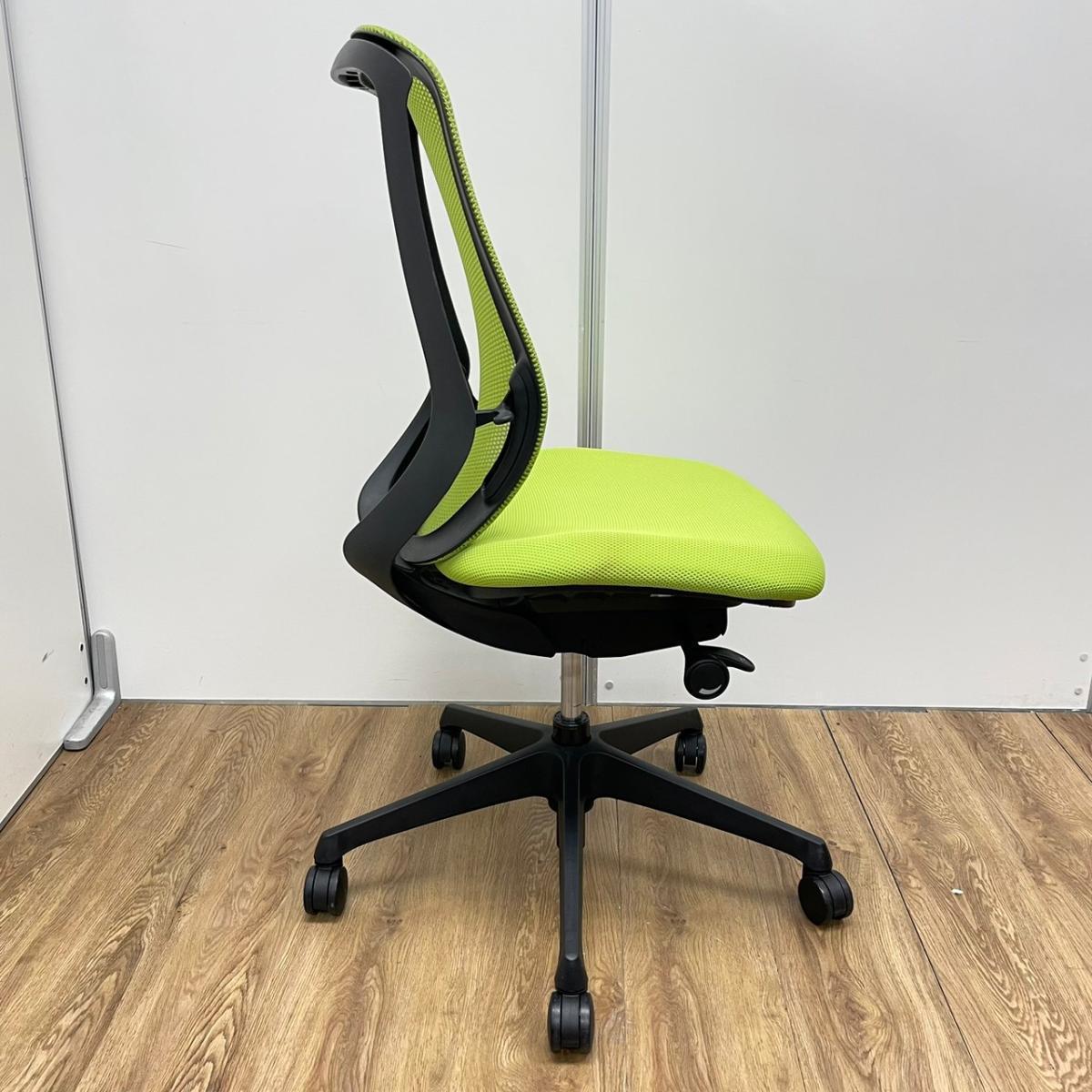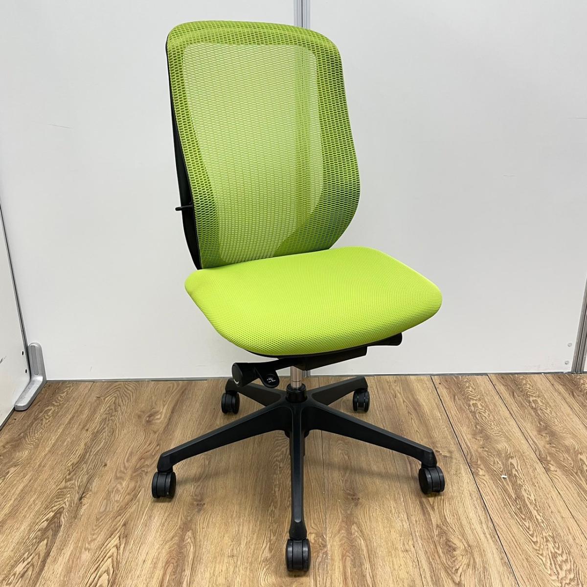 オカムラ製 シルフィ ライムグリーン ブラックフレーム 背面メッシュ ハイバック 樹脂脚 前傾チルト機能付き! オカムラ製品で最も人気を集める高機能メッシュチェア! 肘無しハイバックチェア!!