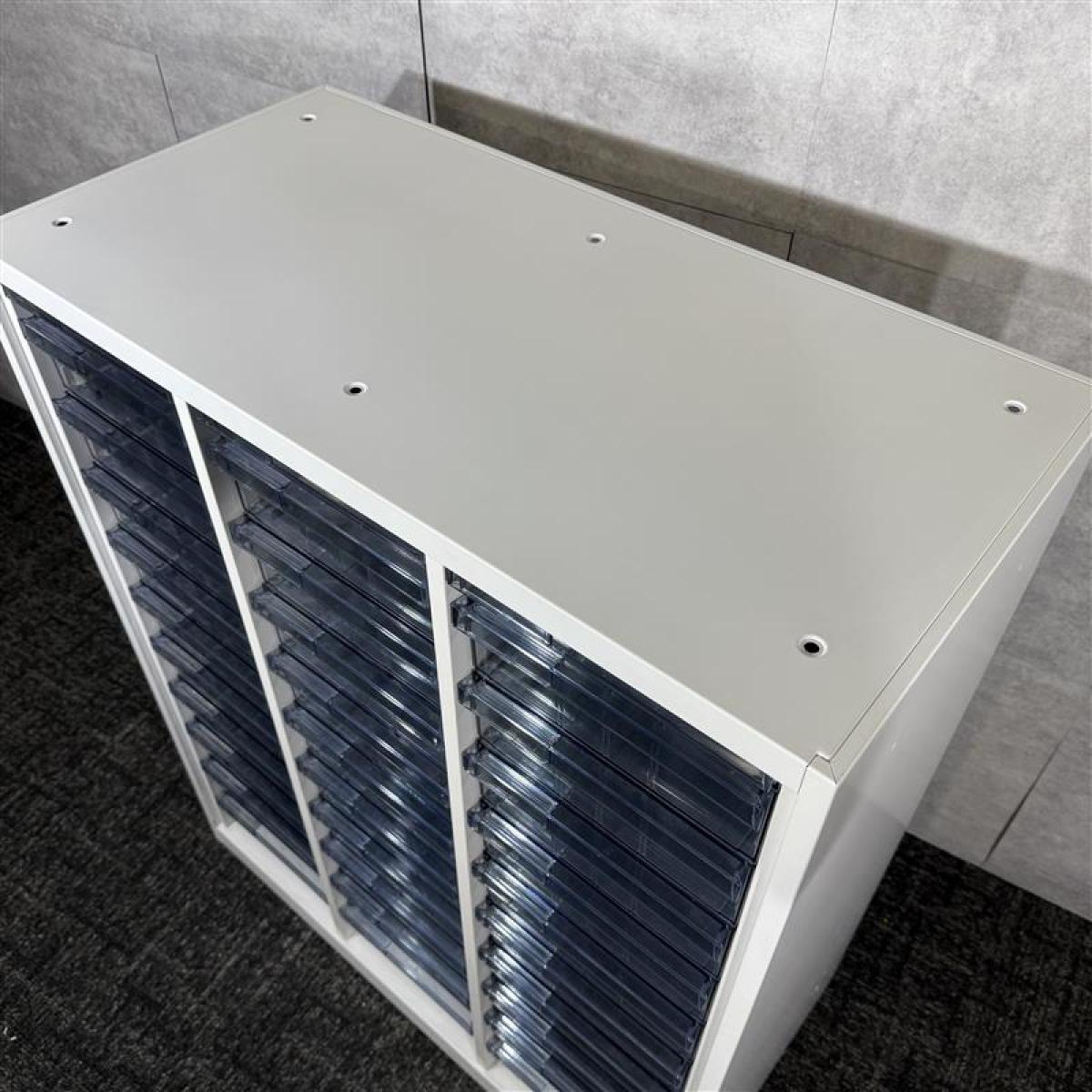 ★オカムラ製 レクトライ ホワイト 3列x16段 浅型x11段/深型x5段混在 W900xD450xH1150サイズ 天板付 クリスタルトレーキャビネット クリスタルトレイ!!