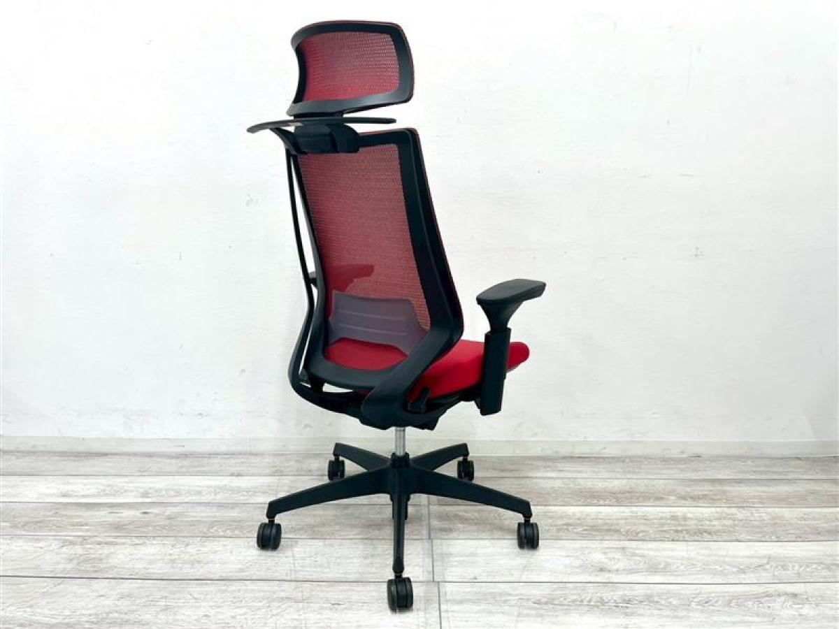 【定価約14万円】【ヘッドレスト付きモデルの入荷です!!】■コクヨ製 デュオラ 肘付きハイバックチェア ■可動肘 ■ヘッドレスト付き ■背座レッド×ブラックフレーム- 仙台店
