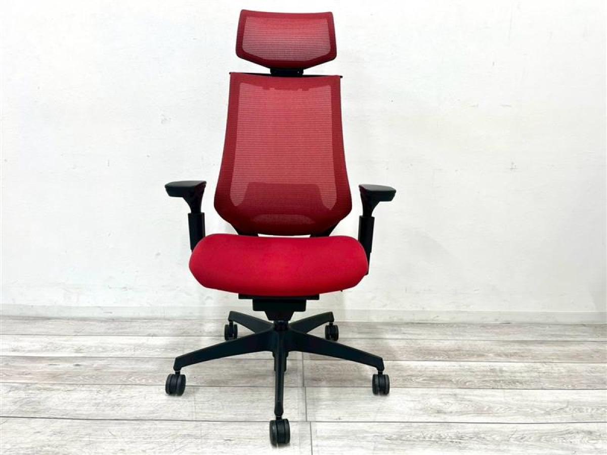 【スタイリッシュなデザインに心地よい座り心地!】■コクヨ デュオラチェア 可動肘付 レッド ヘッドレスト付 ■様々な姿勢に柔軟にフィットする高機能ワーキングチェア!【KOKUYO Duora】