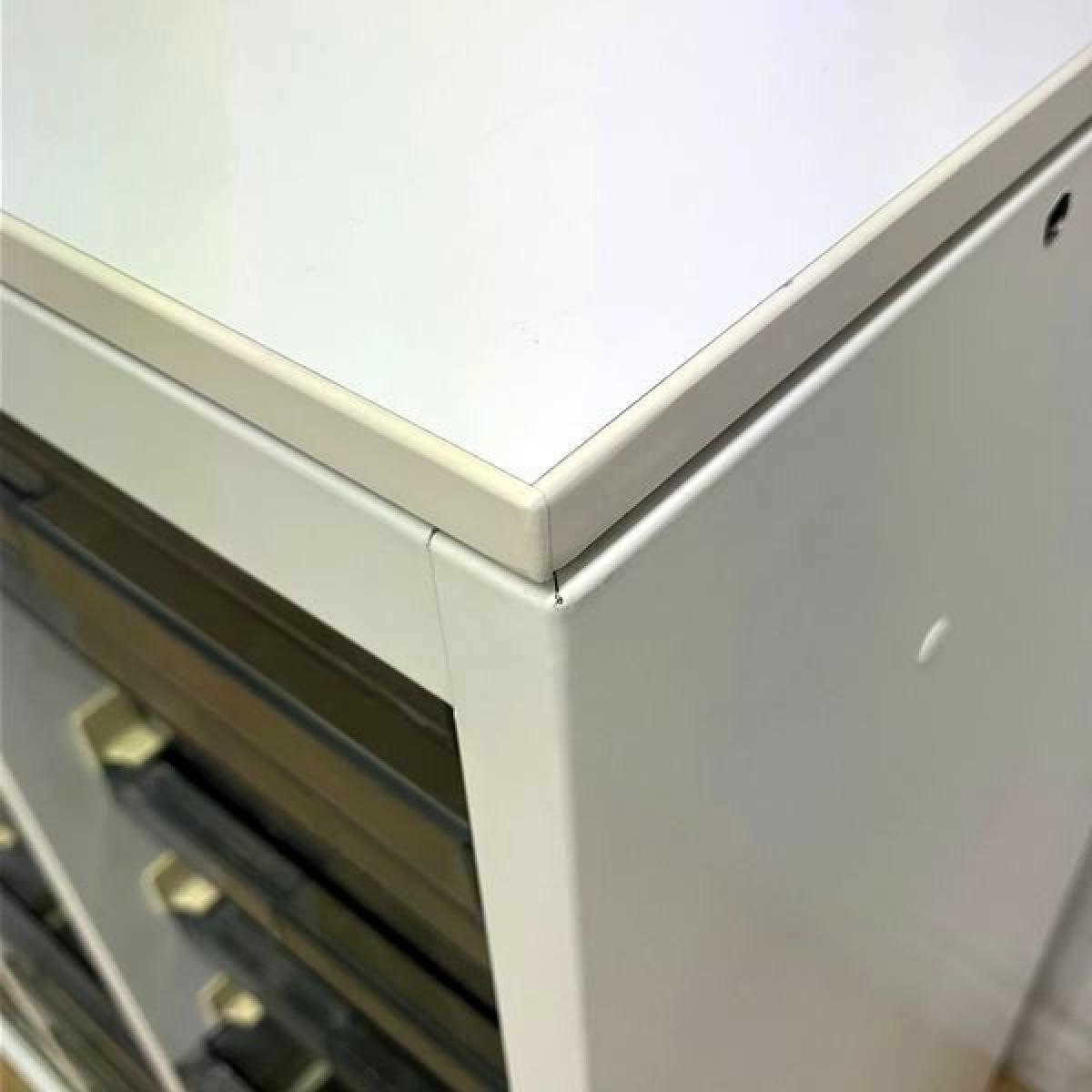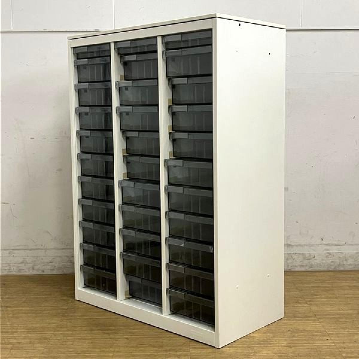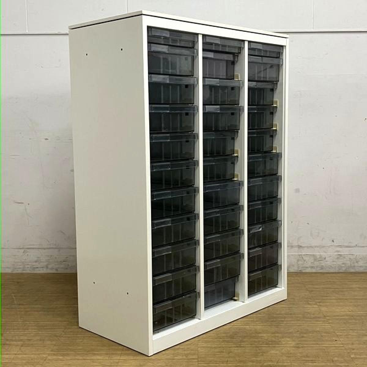 【在庫入替セール】オカムラ レクトライン 浅型1段+深型10段 ×3列 トレーキャビネット クリスタルトレイ書庫 天板ホワイト×本体ホワイト レアなW800×D400サイズ ※トレイのストッパーが一部破損- 名古屋千種店