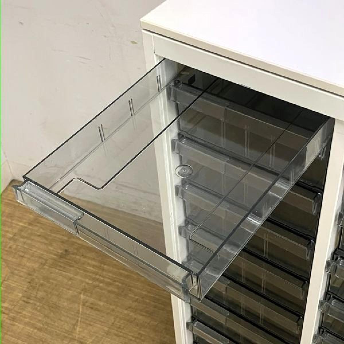 【書類・備品整理の必需品!書類や備品のストックにピッタリ!※1段目のみ浅型仕様】オカムラ レクトライン クリスタルトレー 書類 引き出し 透明 ケース ローキャビネット 整理 中古家具 オフィス家具 福岡 九州最大級《オフィスバスターズ福岡博多店は、福岡を拠点として、日本全国へ中古オフィス用品・オフィス家具を提供しております》
