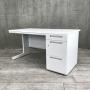 【在庫入替セール】片袖机 イナバ デュエナ W1400のおおきめサイズ 清潔感のあるホワイトカラー 鍵付き ※天板ふちにキズの補修跡あり