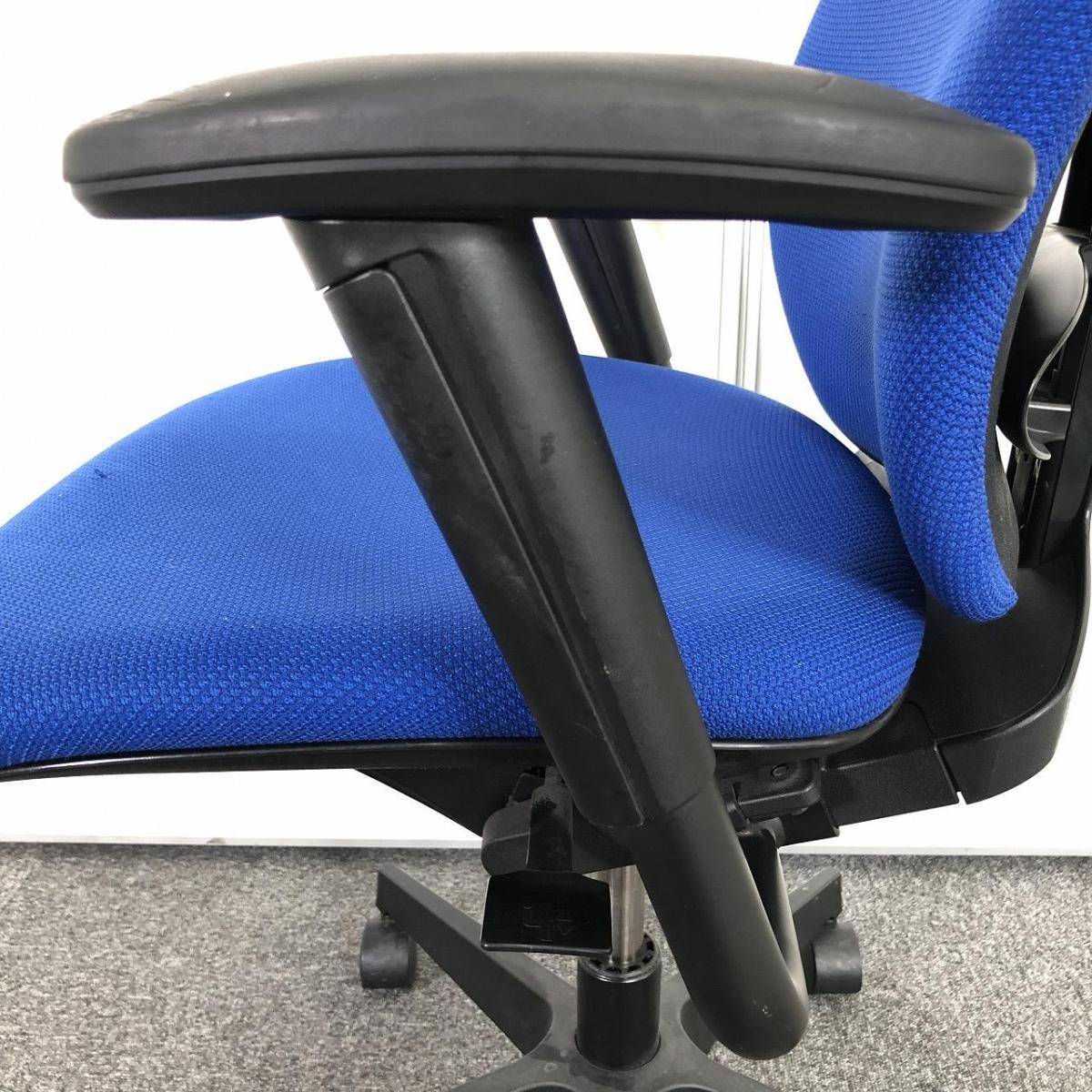 ★【商品入替のため、残り7脚限り】イトーキ製 プラオ ストロングブルー 肘付き ハイバック アジャスタブル※可動肘(ソフトパッド) ランバーサポート付 一人ひとりにマッチする座り心地! ミドルクラスの定番チェア! 肘付きハイバックチェア!!
