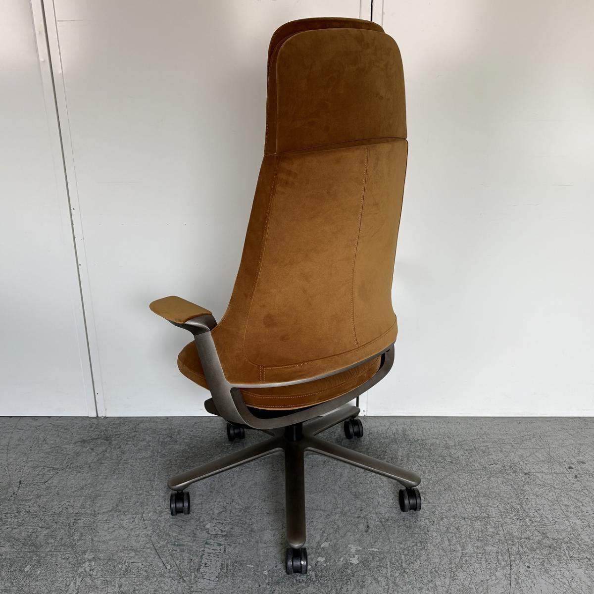 【おしゃれなスエードタイプ!高級感と重厚感のあるエグゼクティブチェア!】■イトーキ(ITOKI)製 レオニスチェア(LEONIS) 肘付 エクストラハイバック ■スエードタイプ ■固定肘・ヘッドレスト付 ■ブラウン- 大阪・堺店