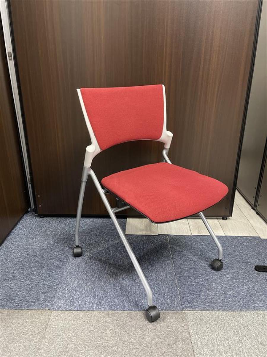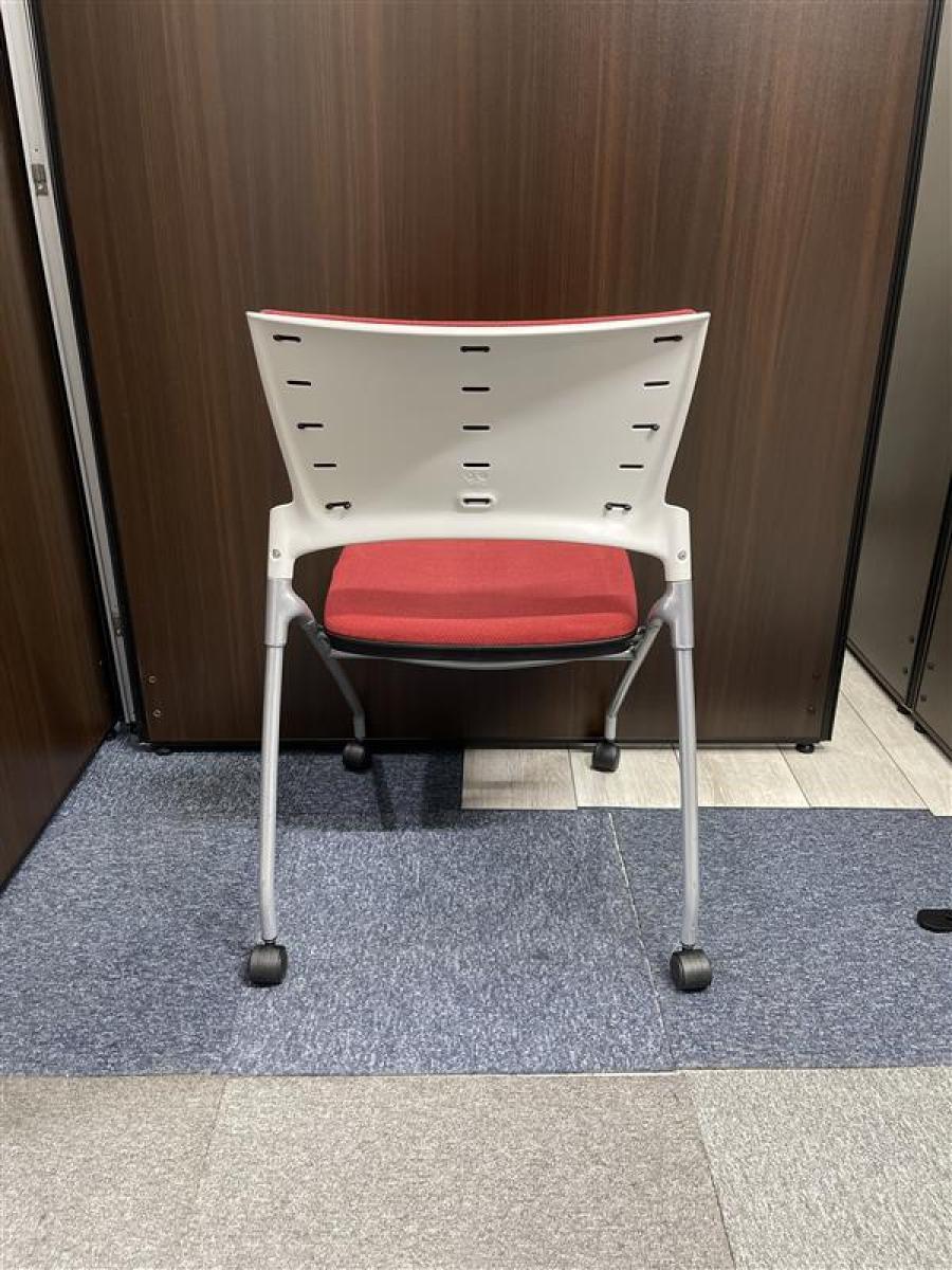 【在庫セール品・1脚限定】【T10】【K10】■イトーキ製 マノスチェア(MANOSS) 肘無ネスティングチェア ■レッド ■キャスター付 ■背パッド付 【ネスティングして省スペース!落ち着いたグリーン!】- 新大阪店