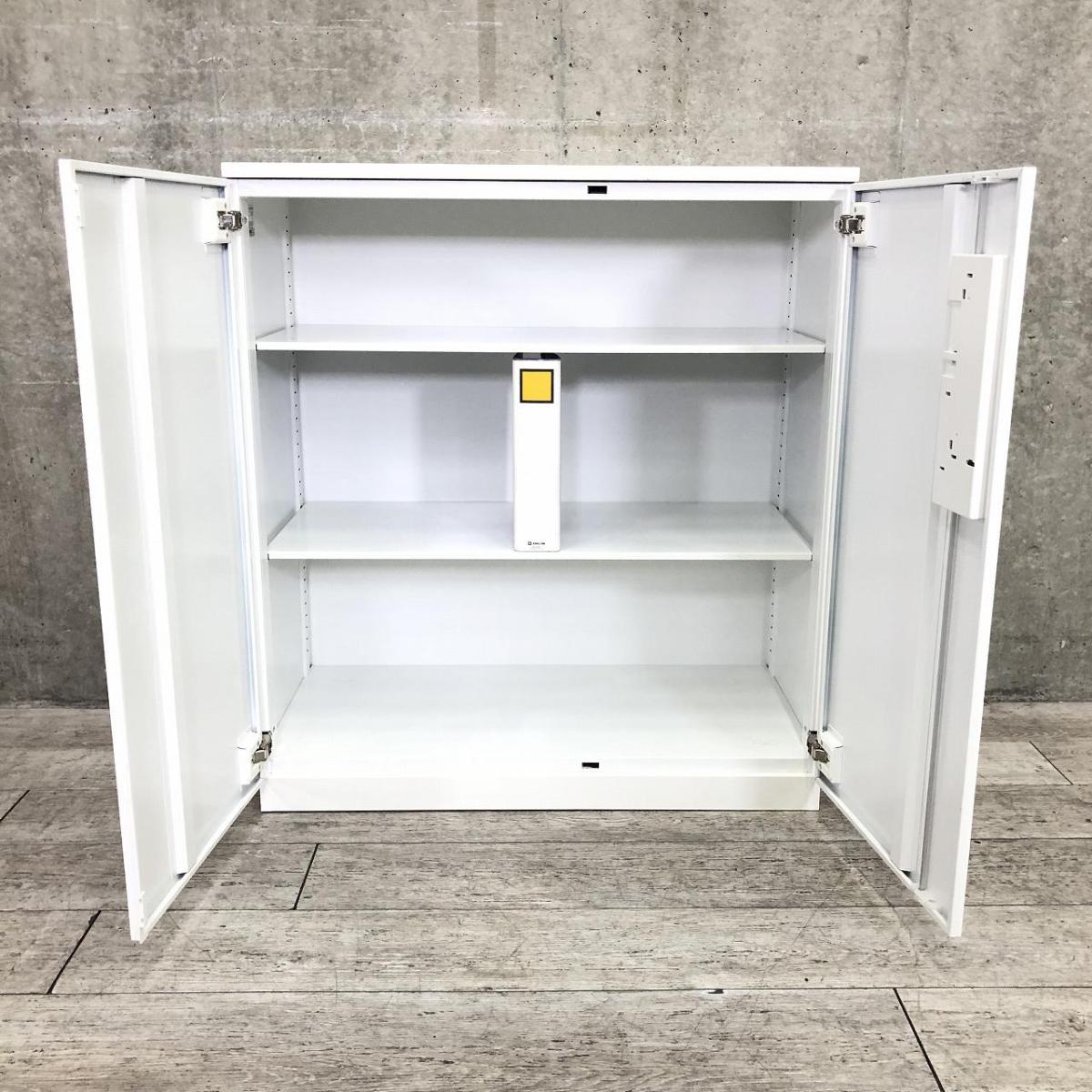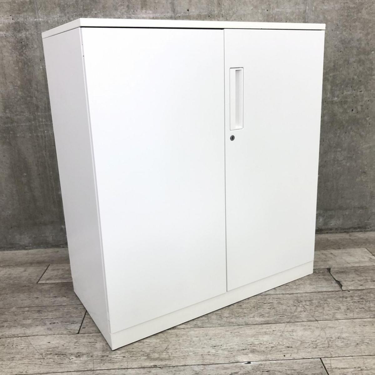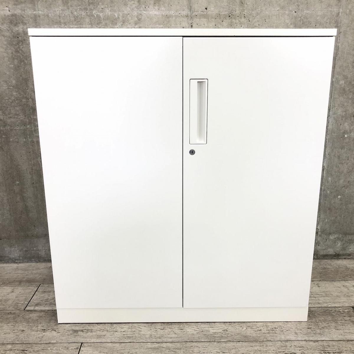 【収納物がひとめで分かる両開き戸タイプ!】■コクヨ(KOKUYO)製 エディア(EDIA)シリーズ 両開き書庫 ローキャビネット H1130㎜ ■天板・ベース付 ■ホワイト ■シリンダー錠
